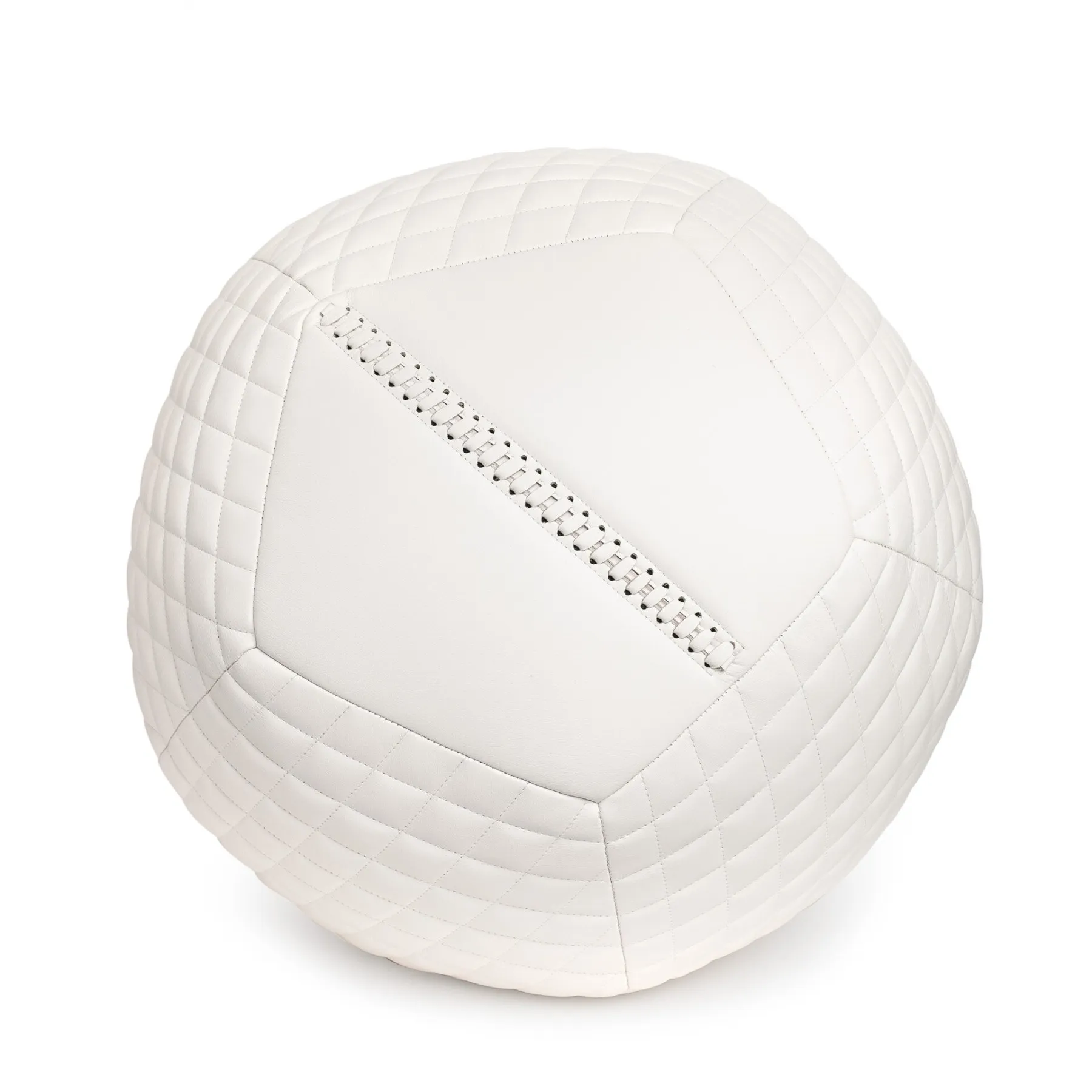 Round, sculptural and uniquely abstract, crafted with supple European leather, the Diamond Ottoman is constructed with quilted topstitched panels.