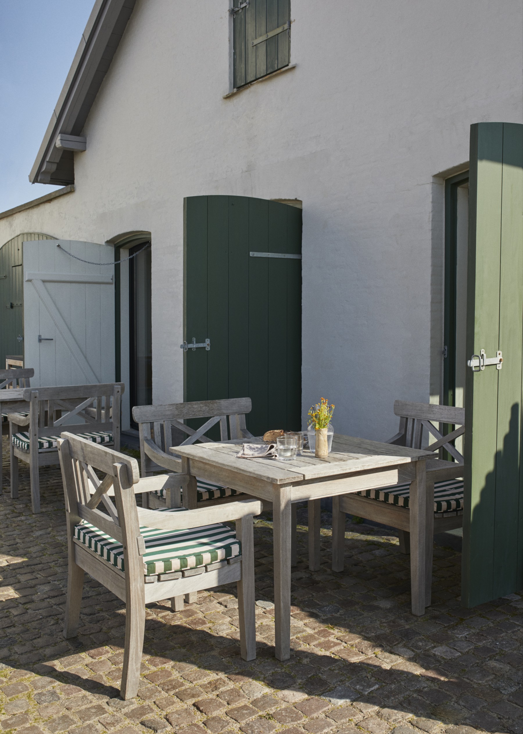 The signature Drachmann series draws inspiration from the beautiful garden of Danish romantic poet and painter, Holger Drachmann. A careful balance of Nordic nostalgia and modern simplicity underlies its enduring popularity. Drachmann cushions are custom-made to fit the collection and highly weather-resistant. The upholstery fabrics are Oeko-Tex certified, colour and lightfast, water and dirt-repellent and even mildew-resistant. The cushion dries exceptionally quickly, even after a heavy downpour, as the foam has an open-cell structure that allows water and air to pass through. The foam provides a firm and comfortable texture that remains the same year after year. Please note different version for the UK market.