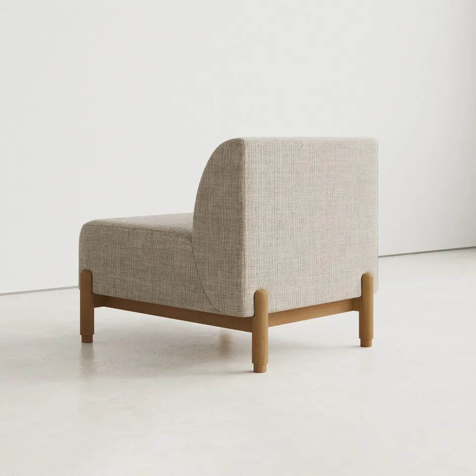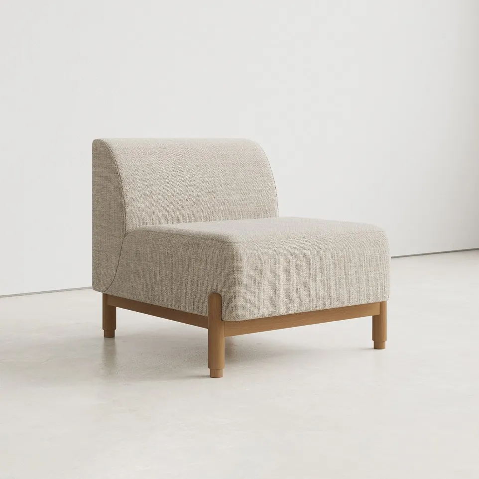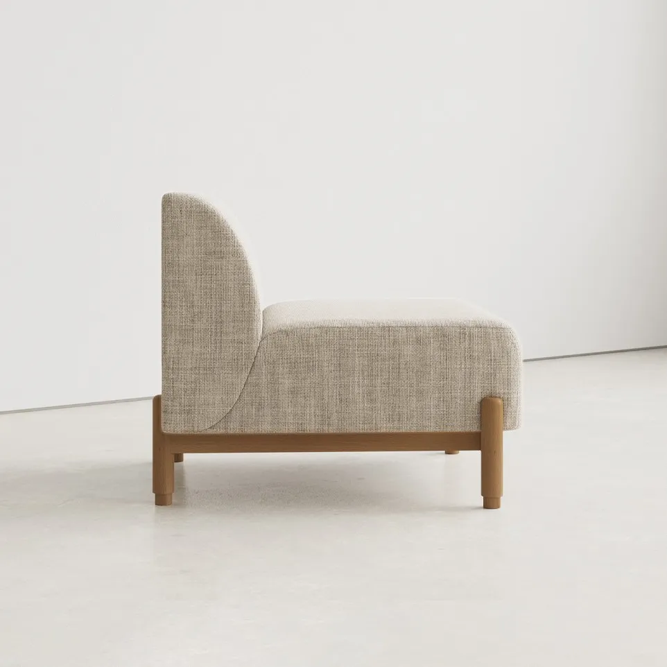This lounge chair is inspired by the curvature of natural sand dunes. The chair sits neatly in a hand turned, solid wood base. Upholstery fabric is Customer's Own Material.