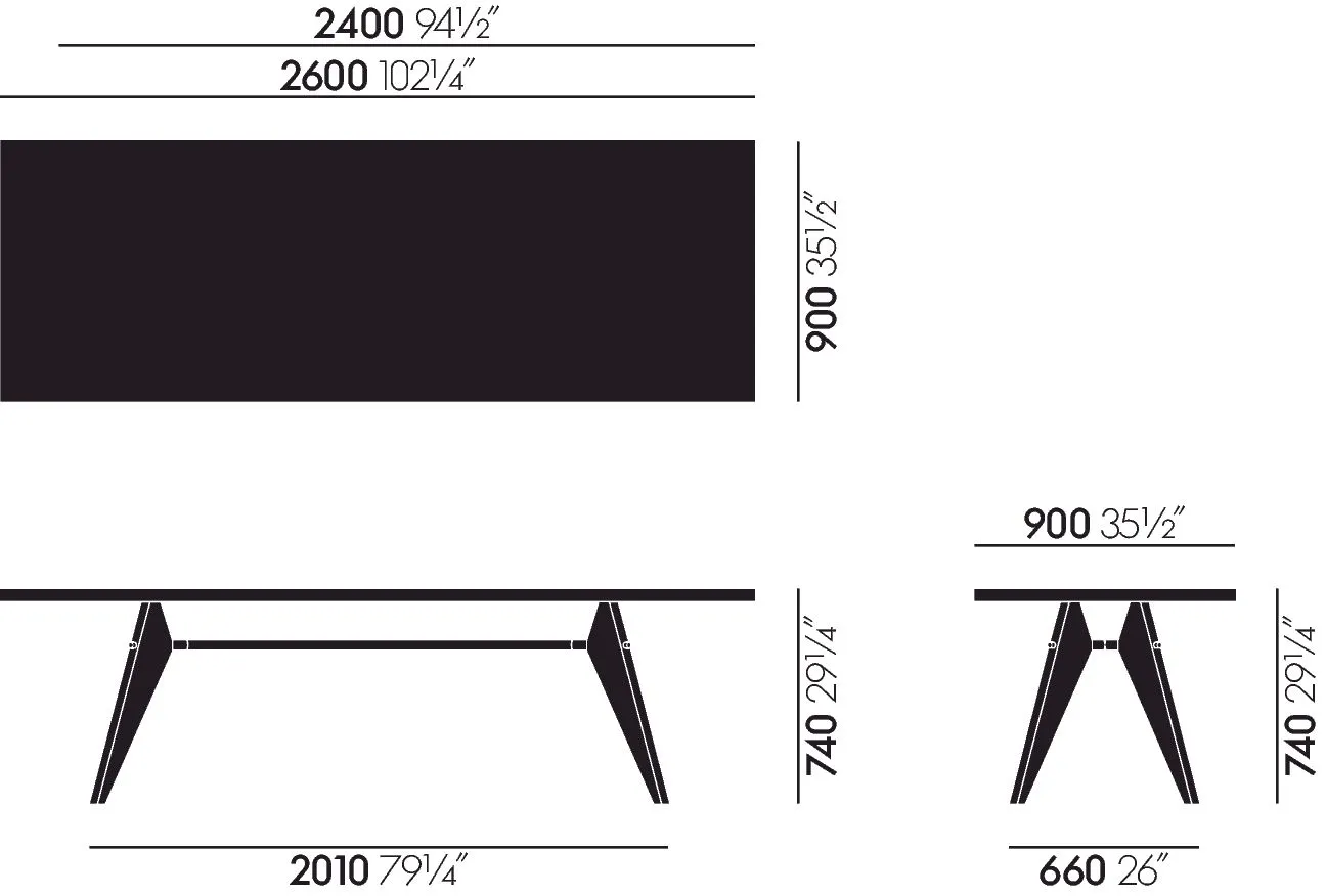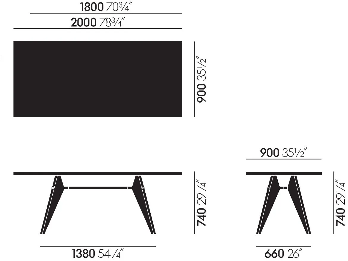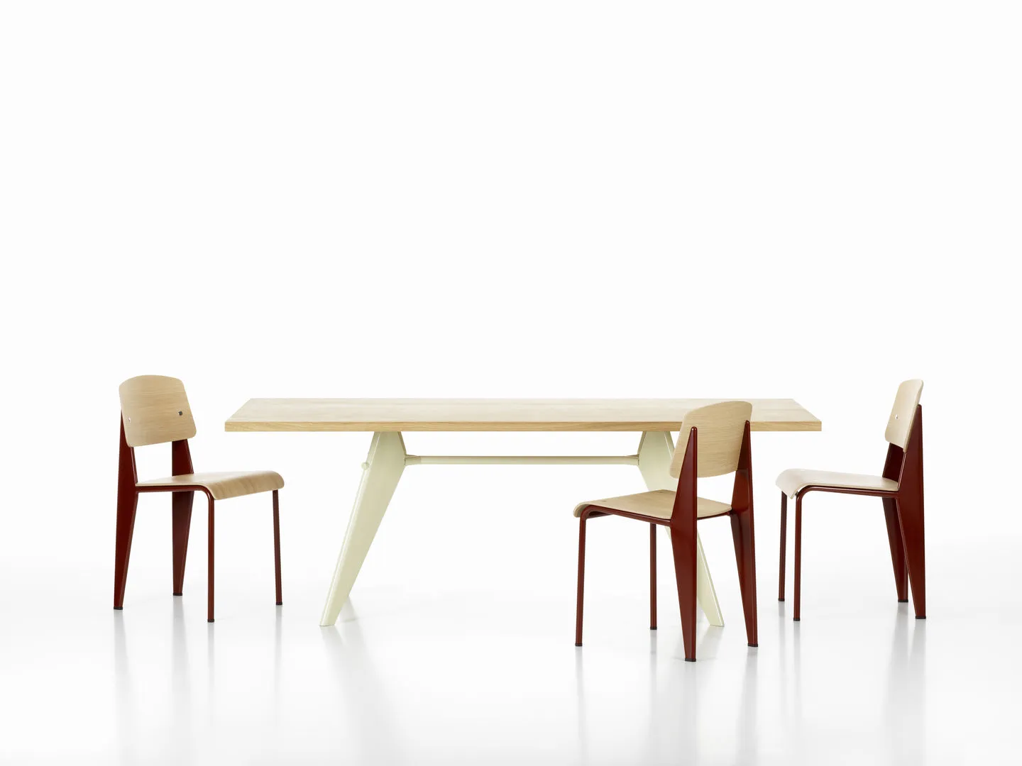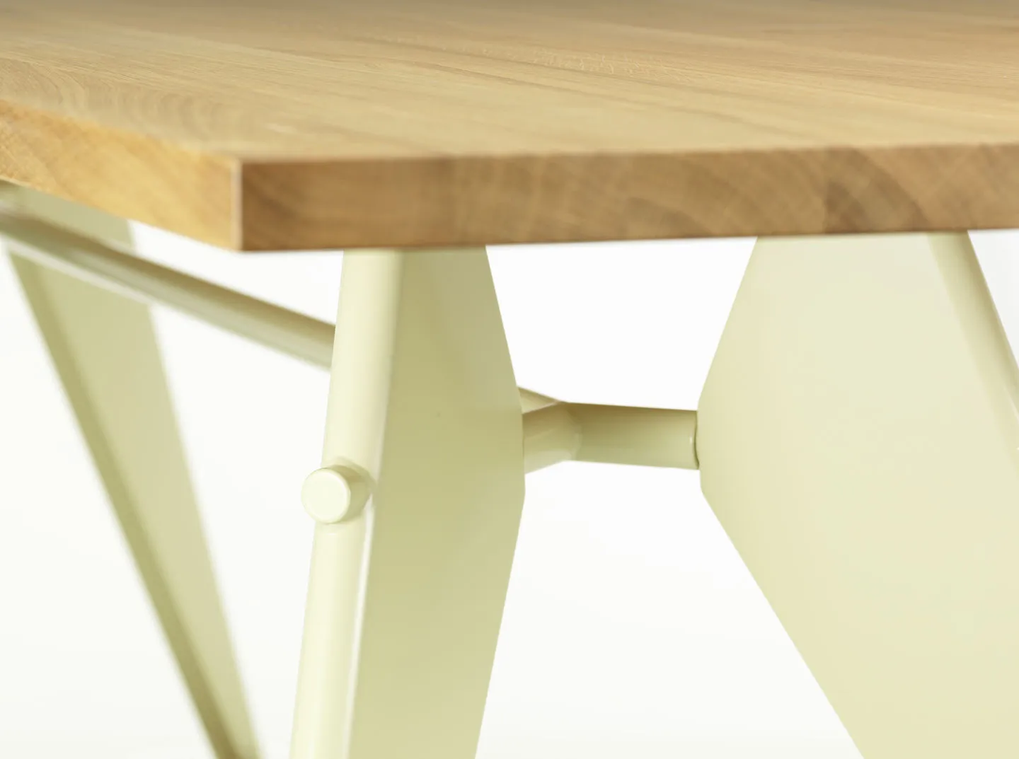 The aesthetic appearance of Jean Prouvé's EM Table adheres to structural principles, illustrating the flow of forces and stresses in its construction. It comes in a range of sizes with table tops in premium solid wood. Thanks to this wide selection, the ideal EM Table can be found for every dining room.