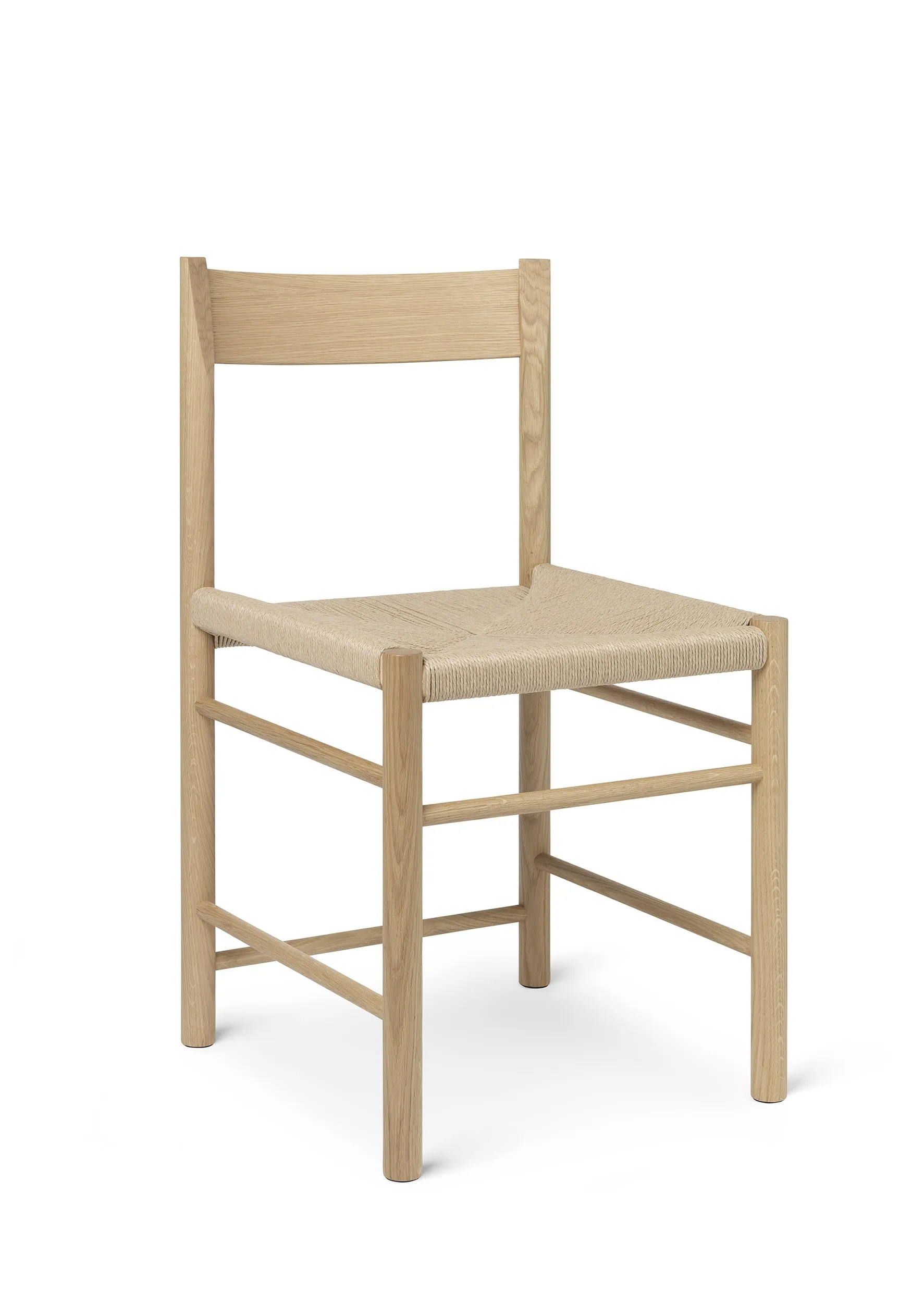 The F chair is a contemporary shaker chair based on the virtues of traditional craft. It carries on the folksy simplicity and honesty of the archetypical shaker chair, but with a modern comfort and a clean- cut, geometrical and minimalistic appearance.