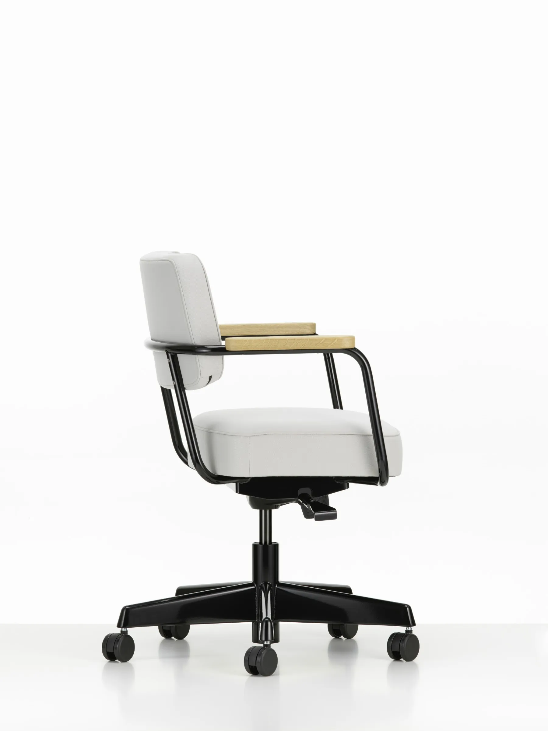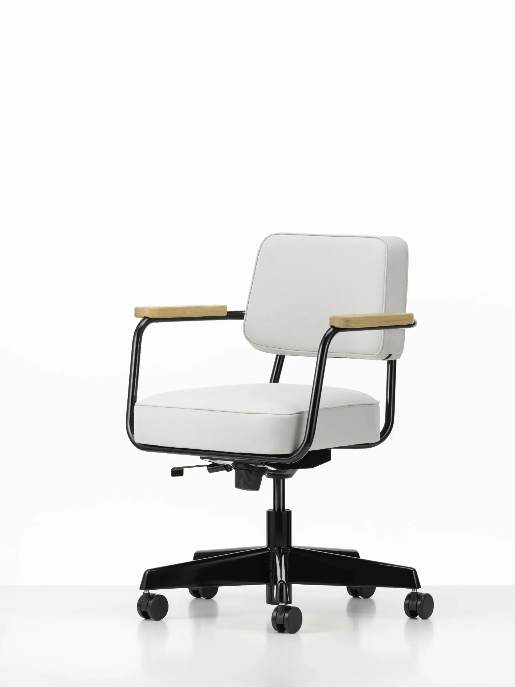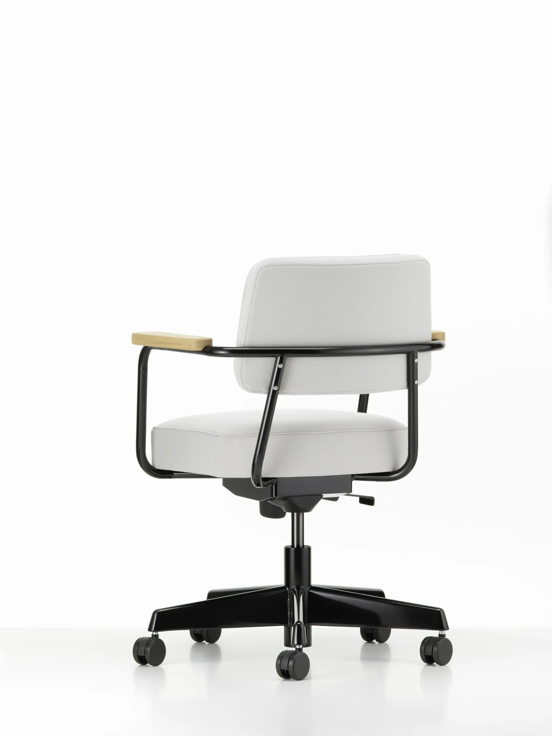 The swivel seat of Fauteuil Direction Pivotant is height adjustable, and the backward tilt mechanism can be adapted to the individual user's weight. These features are paired with the generous upholstery to ensure optimum comfort. Leather or fabric covers are available in many different colours, making it easy to find the ideal chair for any type of business workplace or home office.