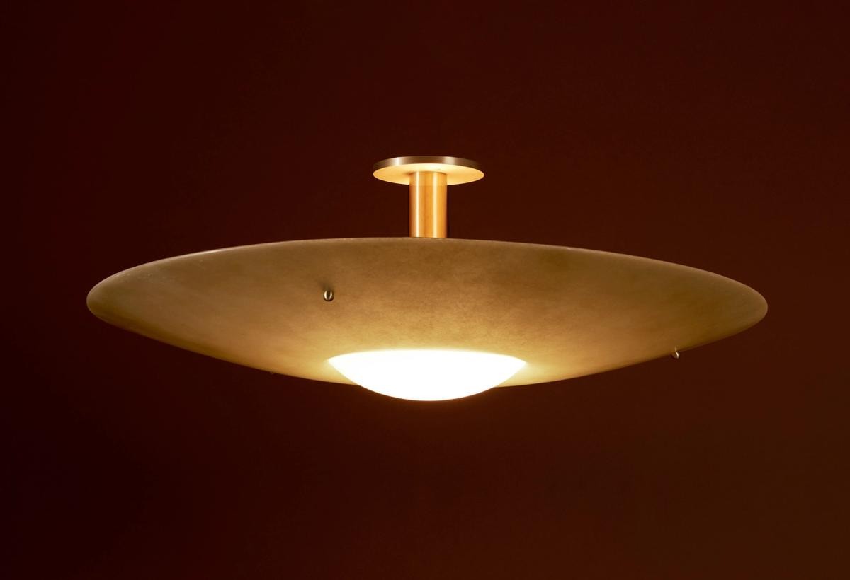 The Fiber series was inspired by nautical materials, textures and connections. The elemental construction uses raw fiberglass discs, illuminated by open blown glass orbs to create airy architectural forms. Each component simply rests in another, which creates a natural ease between materials.