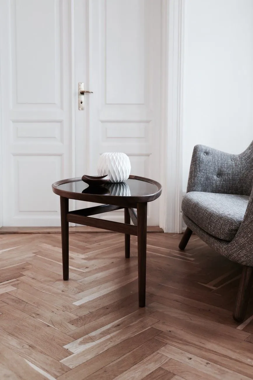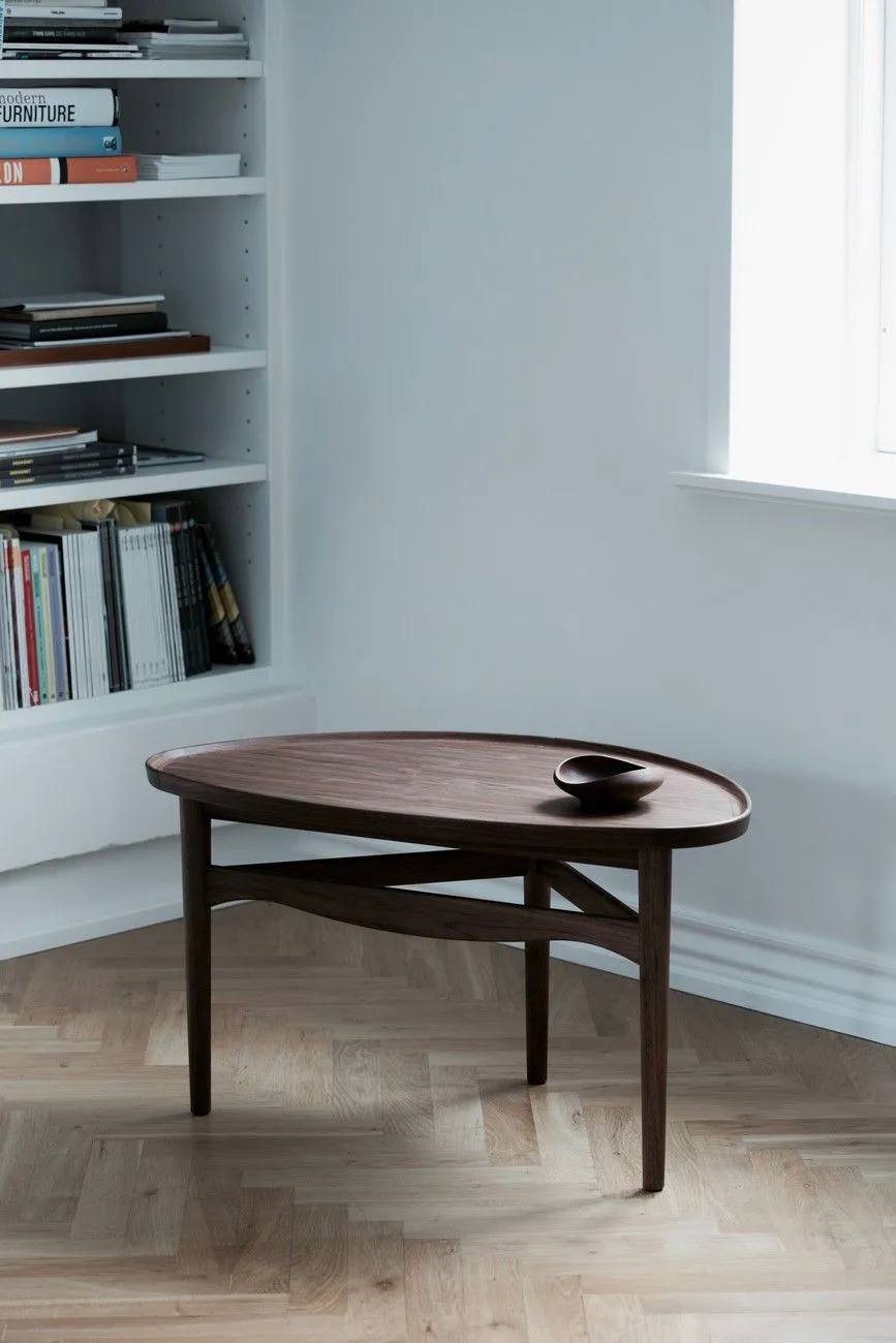 This eye-shaped, three-legged table was originally designed to match the 46 Sofa. The shape of the table fits perfectly with the curve of the sofa, and hence creating a design unity between the two pieces.