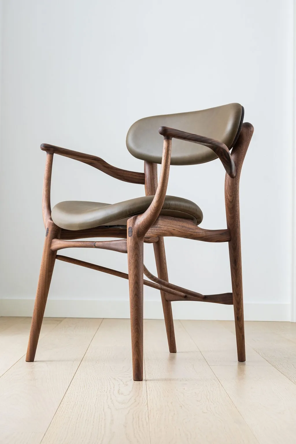 The Fjoon collection rose out of Fernweh's obsession with high-end upholstery, an infatuation with wood joinery, and principles of chair strength from the broader chair-making community, especially Windsor chair makers.