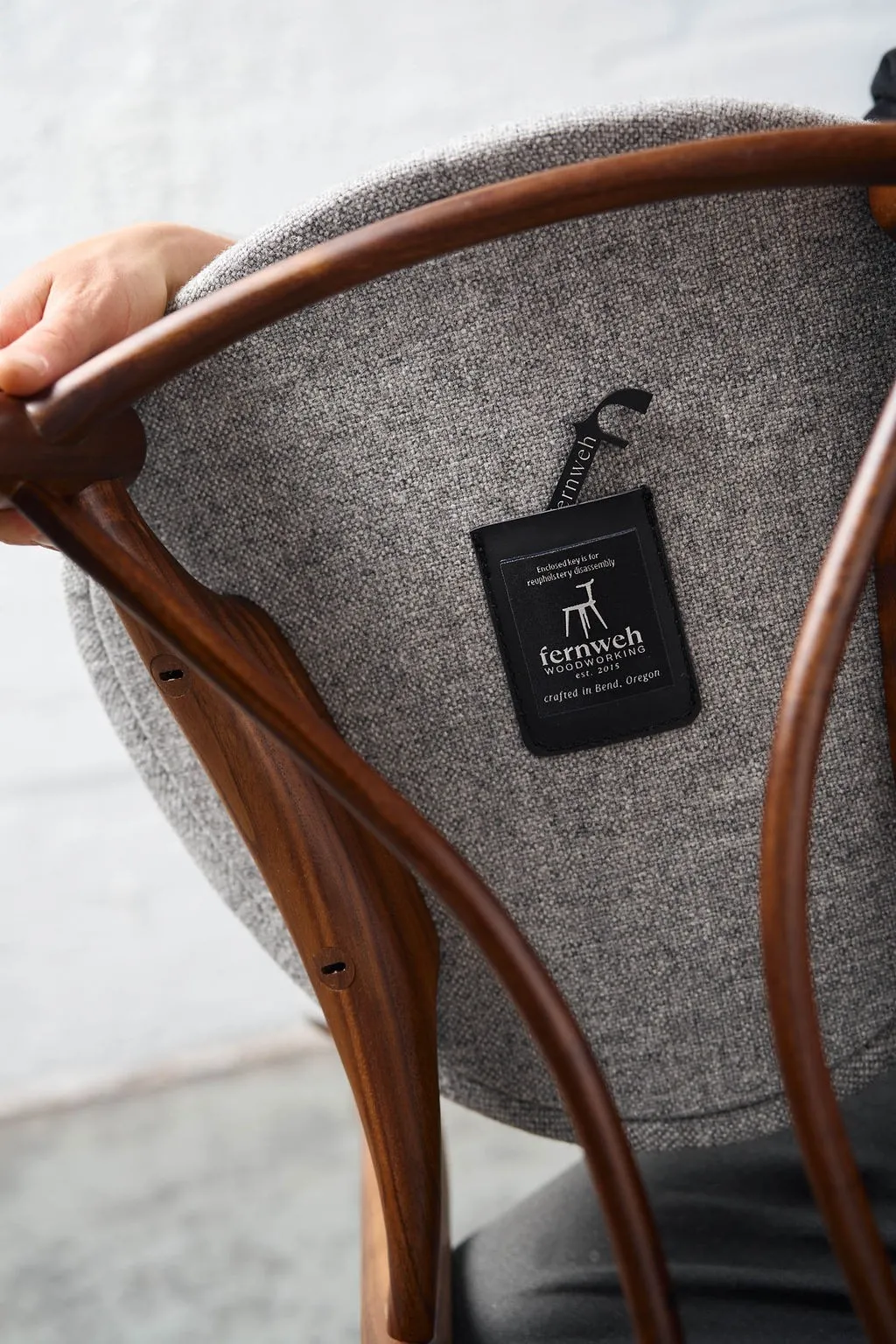 Justin founded Fernweh Woodworking in 2015 in Bend, OR, finding his deep passion for design through woodworking. He developed the Sling Chair and Tripod Table in 2017, and these designs sparked his desire to develop a full line of small-batch hand-crafted furniture. The Oxbend Collection arrived in 2020, and the Fjoon Collection in 2023. A few of Justin’s design inspirations are Sam Maloof (particularly his passion, kindness, and work ethic); Hans Wegner (his practicality and purposeful creativity); and Finn Juhl (his pursuit of perfect curves and natural beauty). Justin studied business at Purdue University. After graduating, he joined the Marine Corps where he deployed on an advisory team working closely with Afghan Police. After moving to Oregon and joining a wildland fire Hotshot crew, he started Fernweh in the off-season from fire.