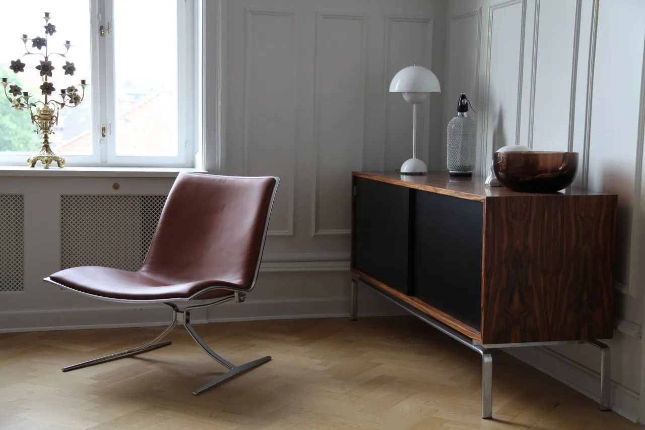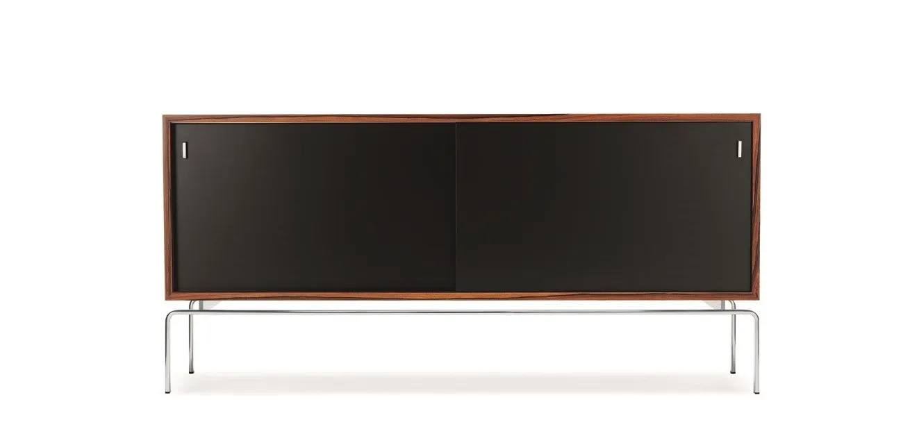 The FK 100/150 Sideboards were designed by Preben Fabricius & Jørgen Kastholm in 1965 and original produced by Kill International in Germany. Although the two designers have individually created some interesting pieces, it is in pair that they have achieved their greatest success. During the eight years of partnership they managed to create a wide selection of very high quality designs. The results were often minimalistic and functional designs in steel, glass and leather. Since 2006, Lange Production has had the exclusive rights to manufacture a variety of Fabricius & Kastholm’s design collection. The furniture is produced at the original factory, and with the original tools as it was in the 1960s.
