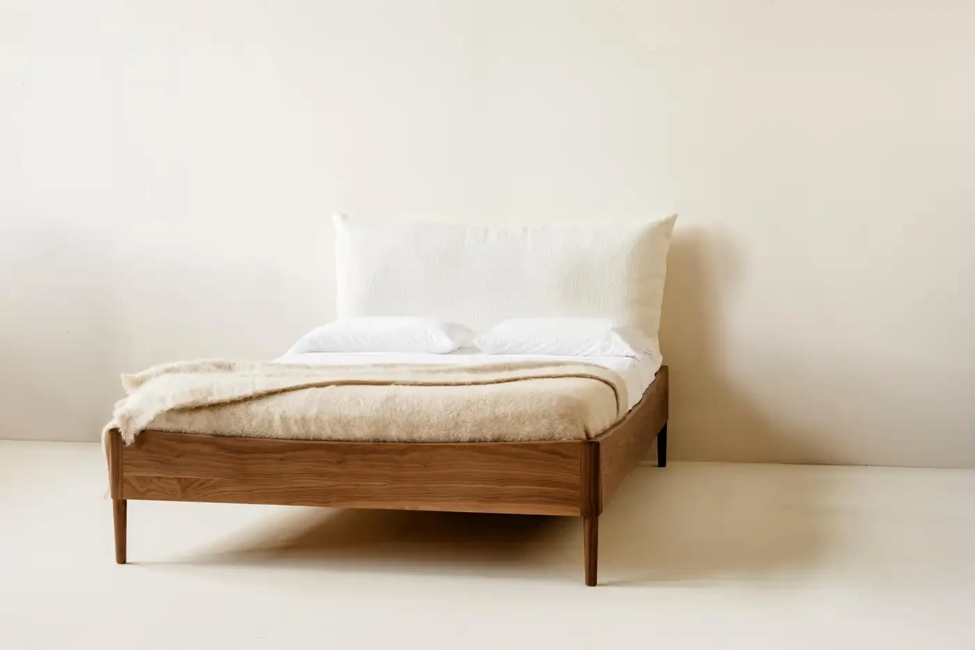 Available in walnut, white oak, or bleached ash, pillow in COM.