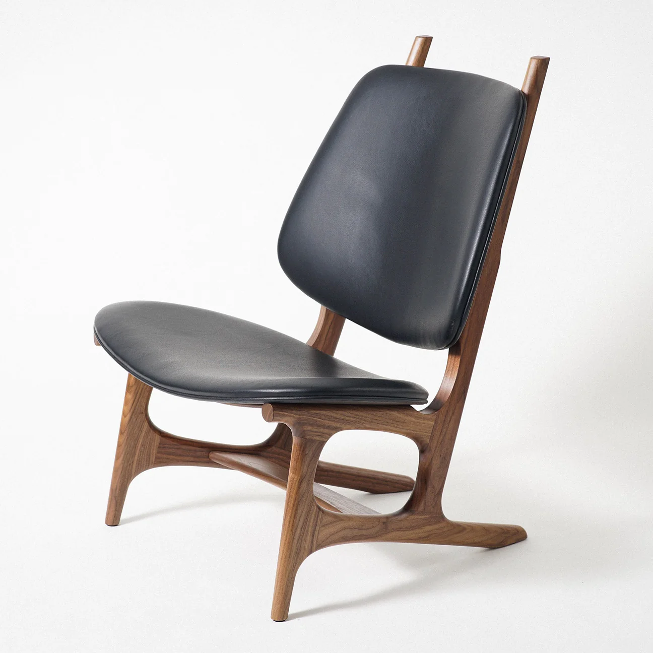 Francis is a roomy easy chair for drinking Americanos or wine, reading novels or browsing magazines, and engaging in pleasing conversations. Taking inspiration from estuaries and smoothed over river rocks, borrowing techniques used for boat building, the solid wood frame of the Francis Easy Chair is fluid with curves, round overs, and scallops. Its limbs congregate tightly in the chair profile, spinning outward, joined together with solid wood laminations that embrace the upholstered shells of the seat and backrest.