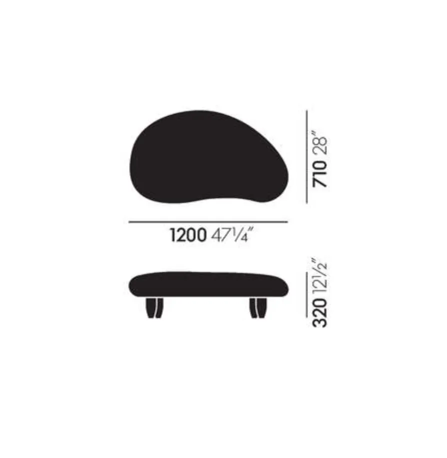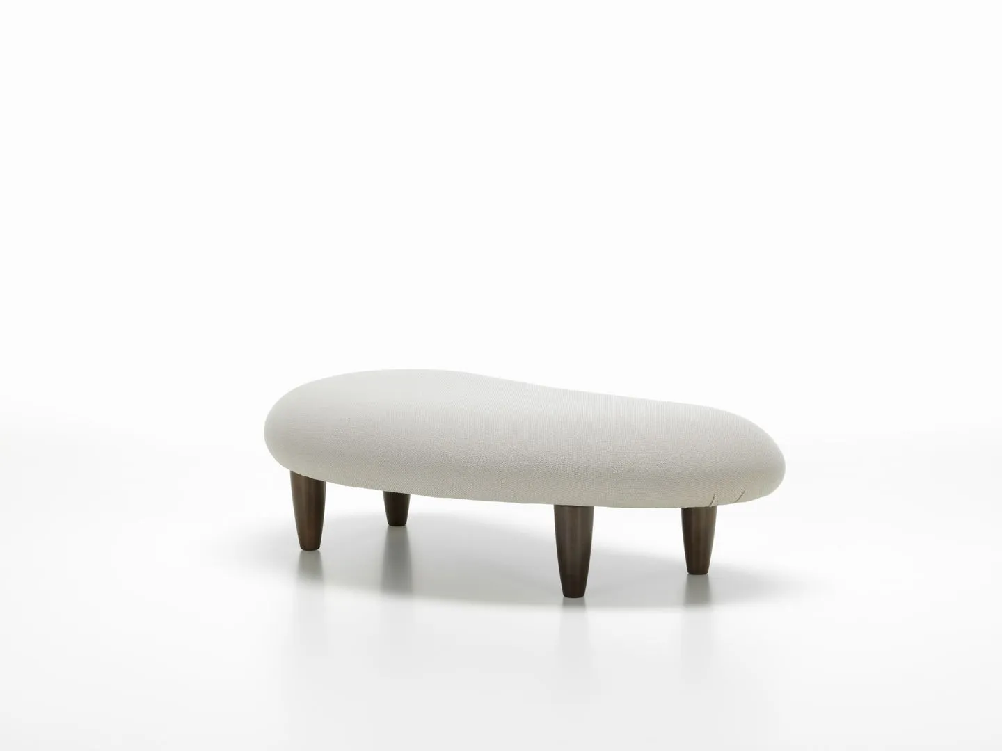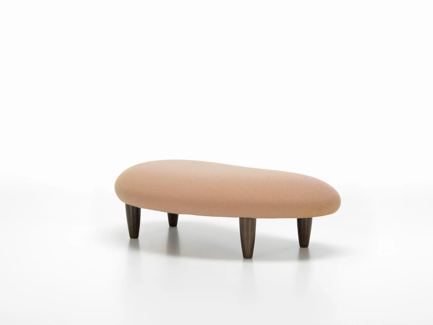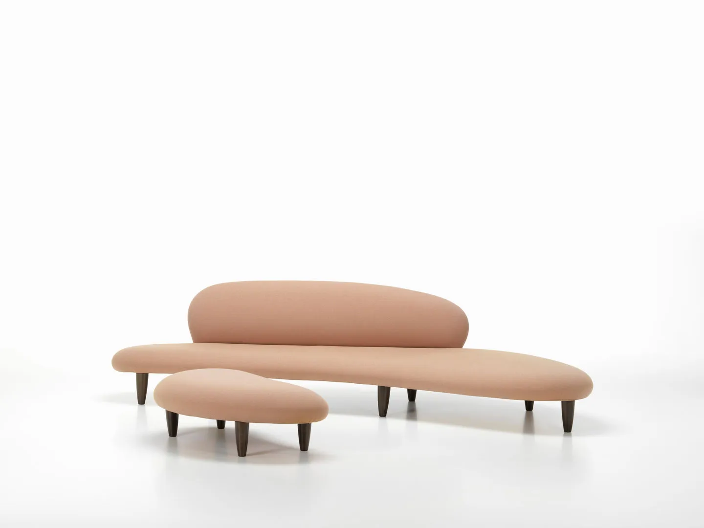 The sculptural quality of Noguchi's design vocabulary finds expression in the Freeform Ottoman: it is entirely different from other designs of the same period, appearing in combination with the Sofa like an enlarged sculpture of flat, rounded river stones. The slender organic forms are fluid and graceful. Noguchi emphasizes the lightness of the elements with thin yet comfortable upholstery and a choice of cover fabrics in natural colors.