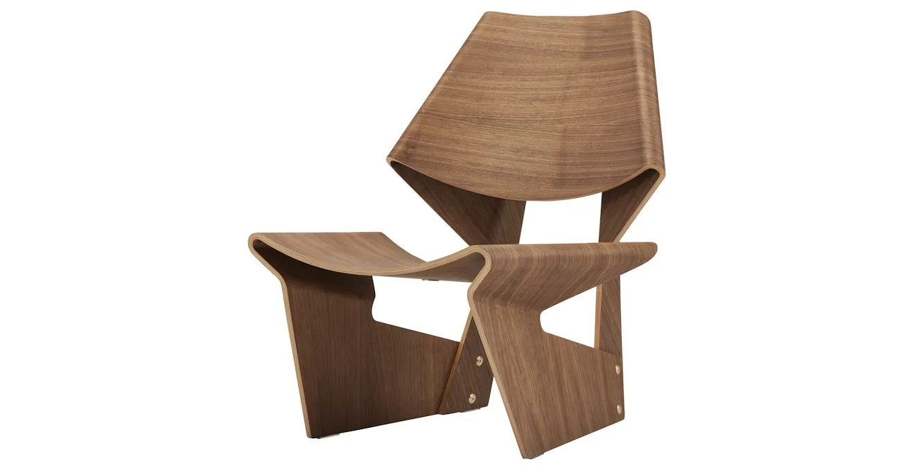 This famous piece, the GJ Bow Chair, was despite of winning the Daily Mail Furniture competition only produced in a few hundred copies during her lifetime. The chair involves a highly complex method of production, and is a great example of her sheer technical daring and experiments with form and moulded plywood. Only composed by two conjoined pieces, the result is organic and elegant.