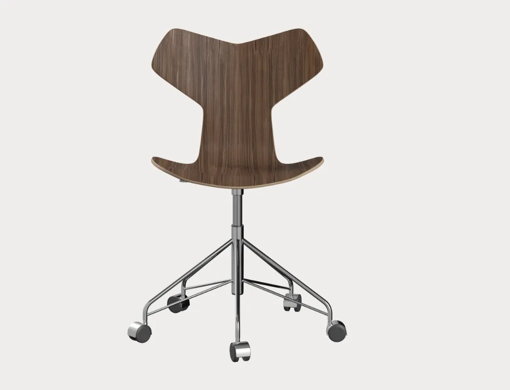 The Grand Prix™ chair is an iconic Arne Jacobsen design with a graphic edge. It was introduced at the Designers’ Spring Exhibition at the Danish Museum of Art & Design in 1957. Later that year, the chair was displayed at the Triennale in Milan, where it received the Grand Prix, the finest distinction of the exhibition. The celebrated chair comes in a range of models and can be customised with an almost endless variety of colours, wood types and upholstery.