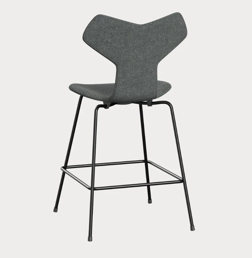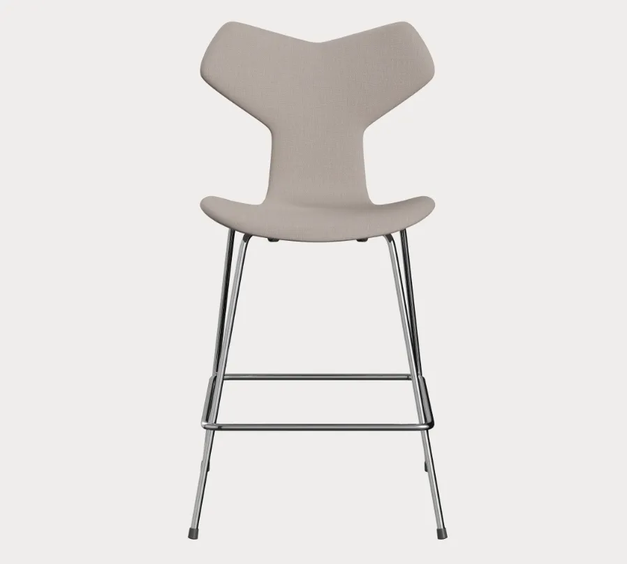 The Grand Prix™ chair is an iconic Arne Jacobsen design with a graphic edge. It was introduced at the Designers’ Spring Exhibition at the Danish Museum of Art & Design in 1957. Later that year, the chair was displayed at the Triennale in Milan, where it received the Grand Prix, the finest distinction of the exhibition. The celebrated chair comes in a range of models and can be customised with an almost endless variety of colours, wood types and upholstery. The 3138 counter stool has a four-sided footrest in tubular steel fixed to the extended legs, preserving the visual harmony of the chair’s clean, simple construction.