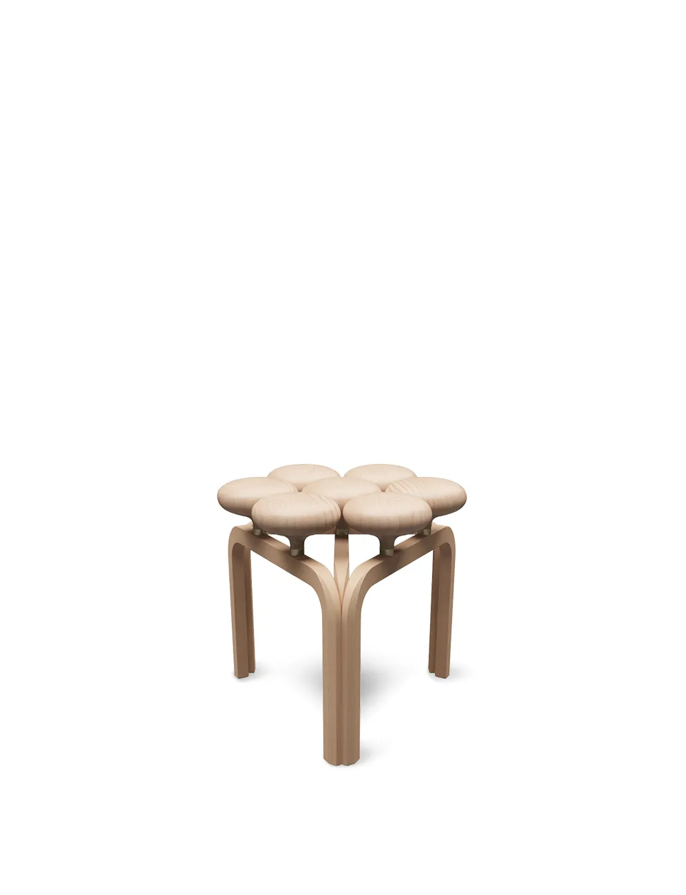 The 3139 barstool has a four-sided footrest in tubular steel fixed to the extended legs, preserving the visual harmony of the chair’s clean, simple construction.