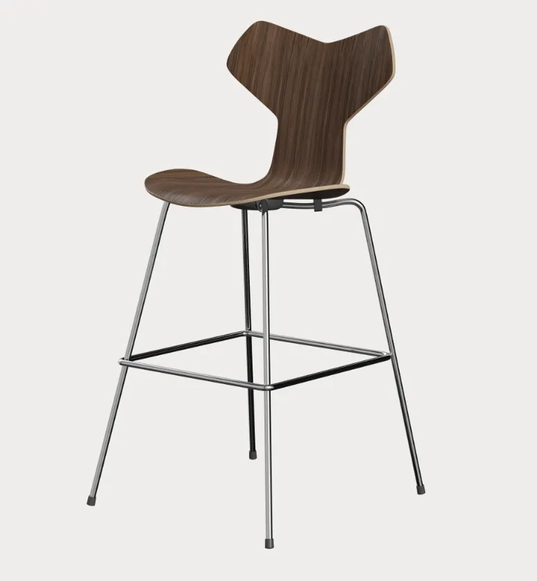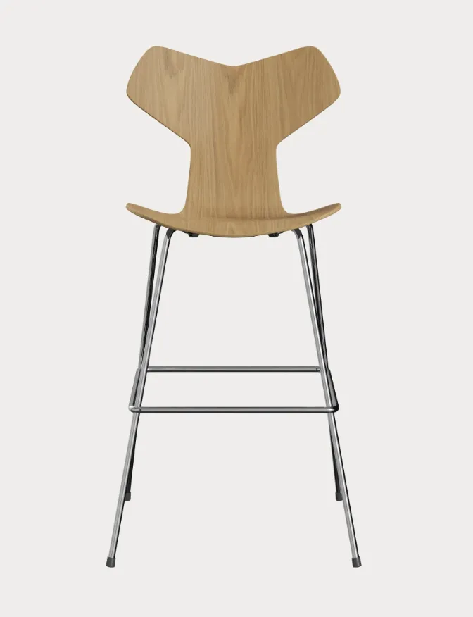 The Grand Prix™ chair is an iconic Arne Jacobsen design with a graphic edge. It was introduced at the Designers’ Spring Exhibition at the Danish Museum of Art & Design in 1957. Later that year, the chair was displayed at the Triennale in Milan, where it received the Grand Prix, the finest distinction of the exhibition. The celebrated chair comes in a range of models and can be customised with an almost endless variety of colours, wood types and upholstery. The 3139 barstool has a four-sided footrest in tubular steel fixed to the extended legs, preserving the visual harmony of the chair’s clean, simple construction.