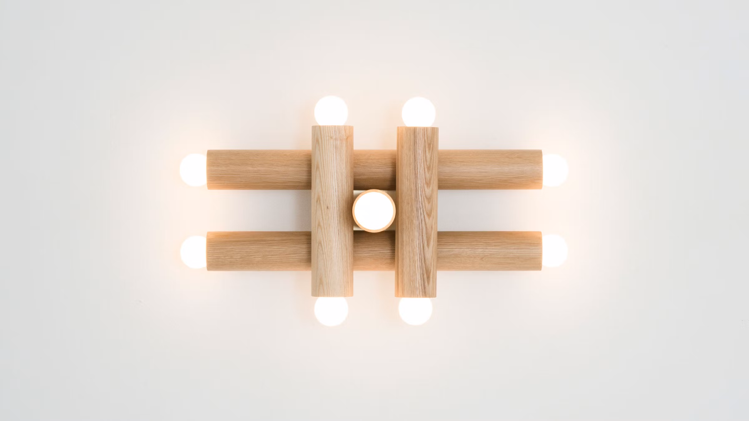 The HIEROGLYPH SCONCE is composed of nested wood cylinders - the foundational elements of our popular and versatile LODGE collection. The 9-bulb fixture makes a striking luminous statement, referencing essential abstract forms of the De Stijl movement, as well as the figurative language from which it takes its name. UL Listed. Damp Rated upon request.