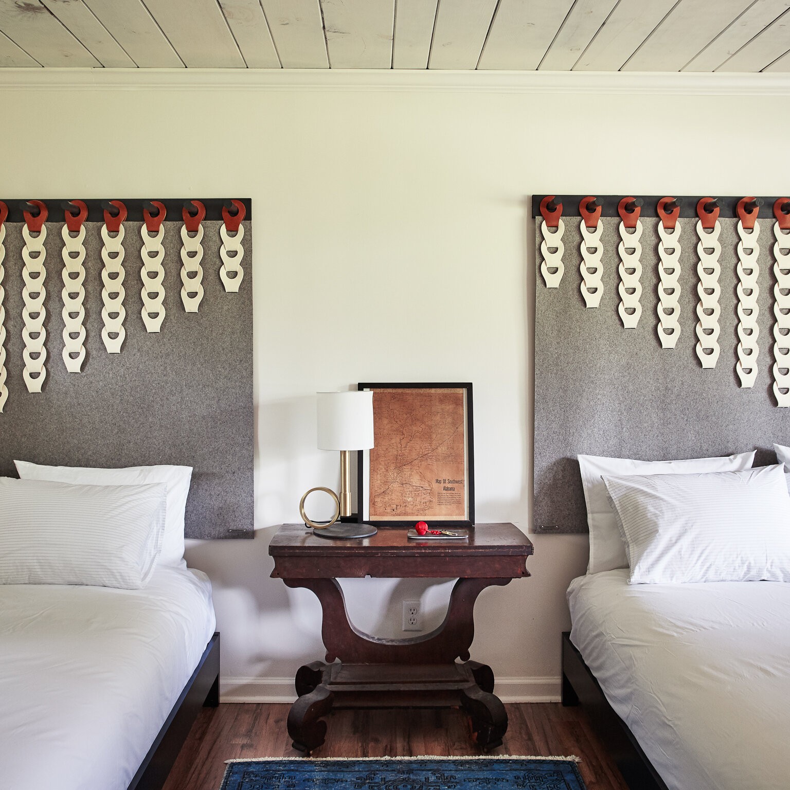 Sized using headboard dimensions, this flexible wall art is handcrafted with felt links woven through architectural felt panels with structural leather top links designed to be placed on customized wood peg rail (included).