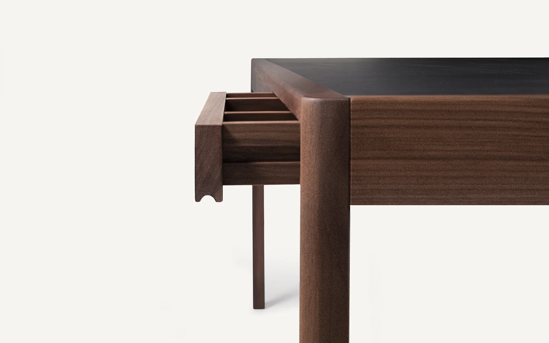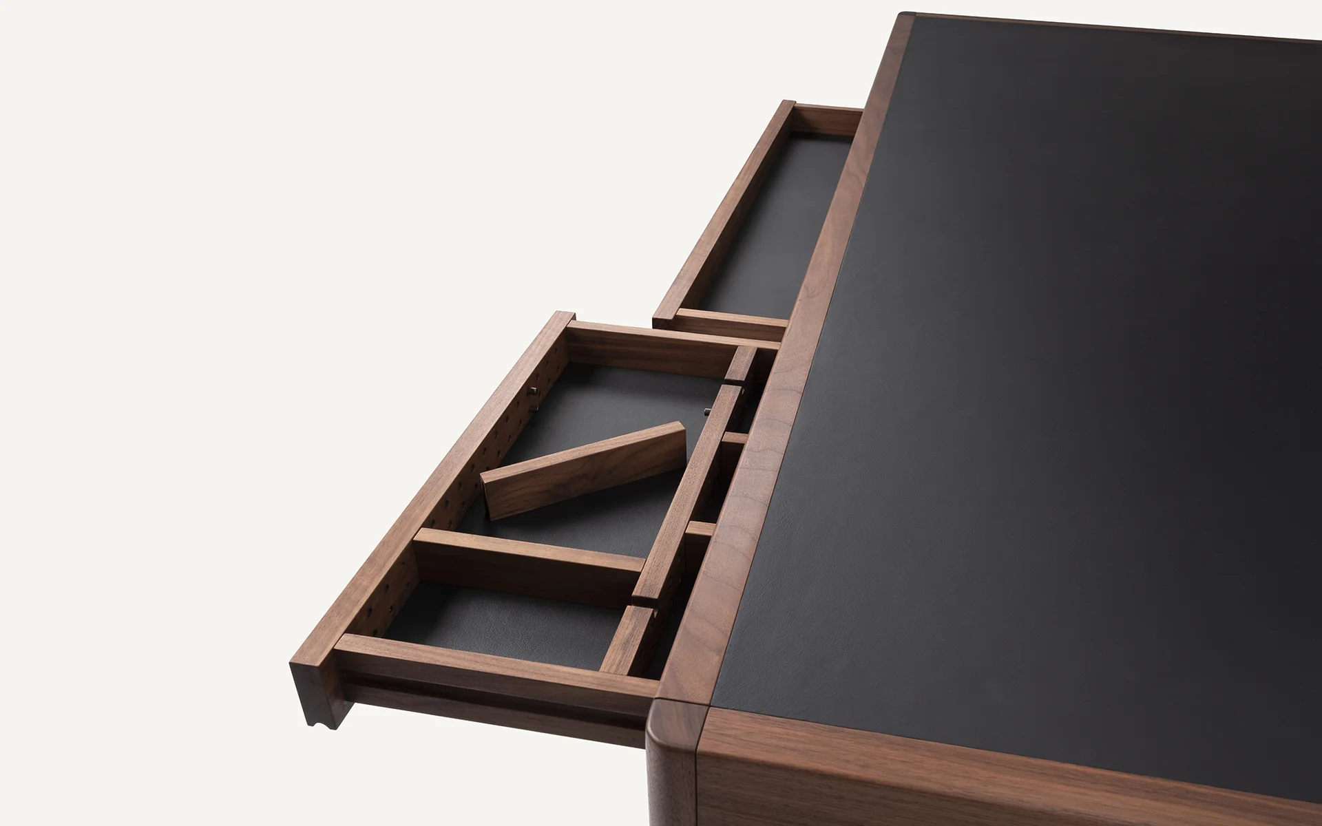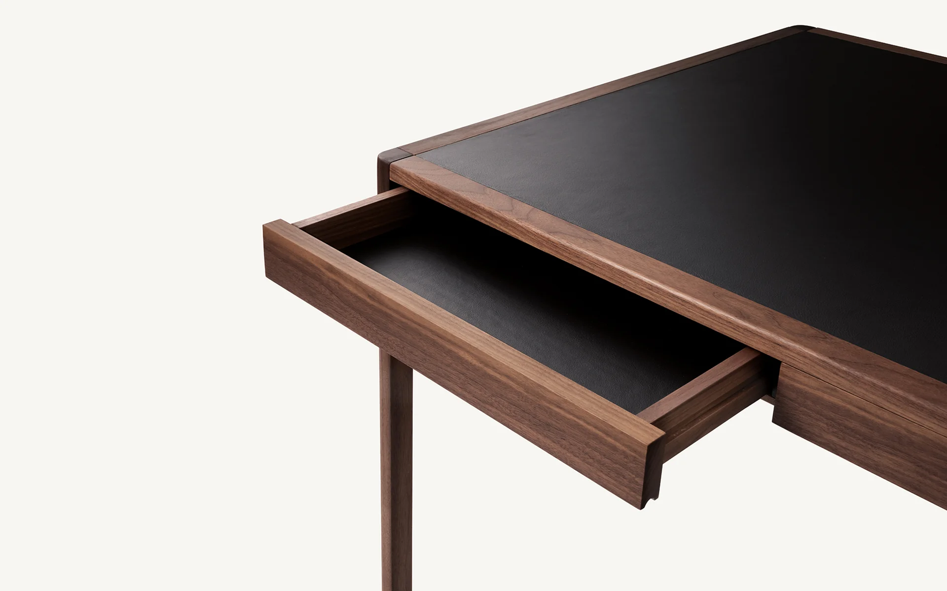 Wood: Ebonized Ash, Oak, Oak Raw, Walnut Black Oil, Walnut, White AshGraded In Leather Options for Leather Inset Top and Drawer Linings