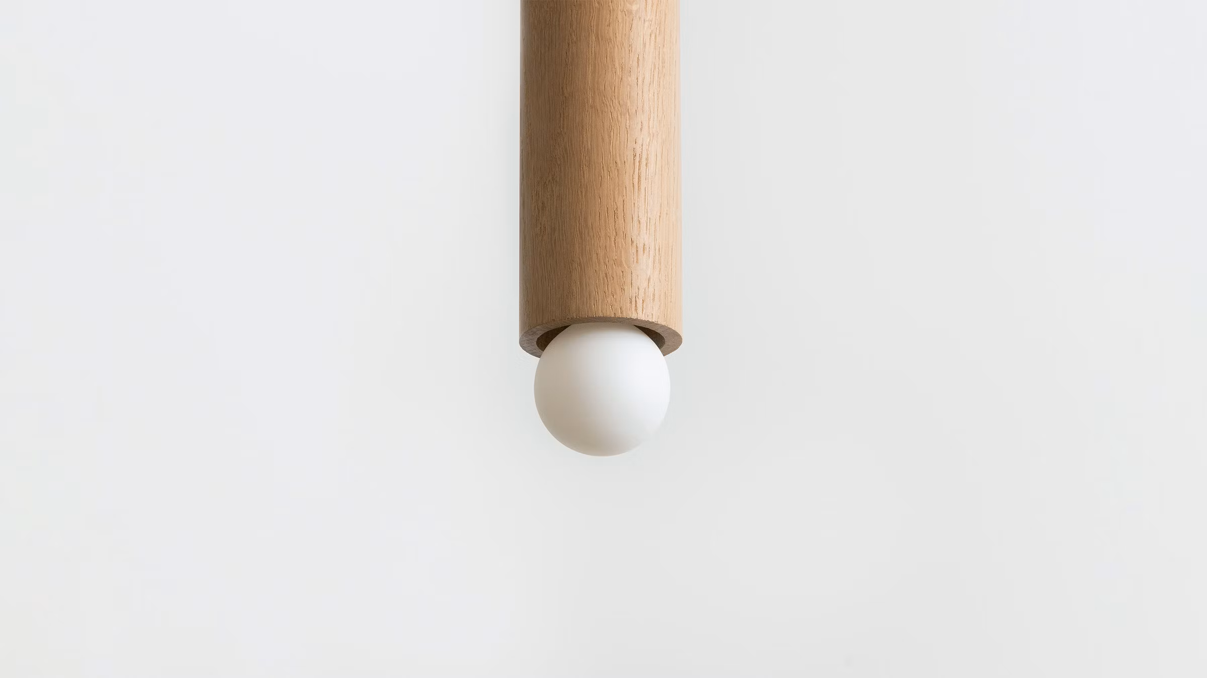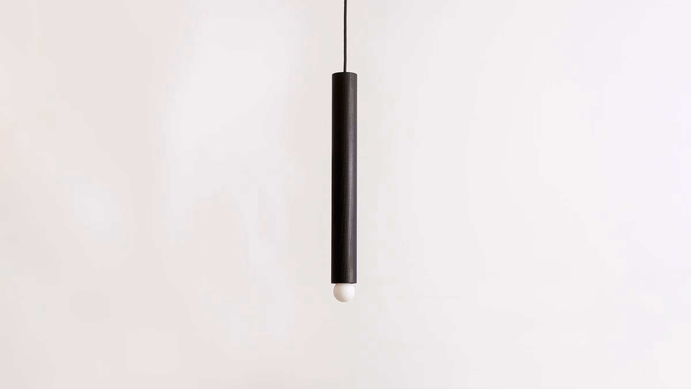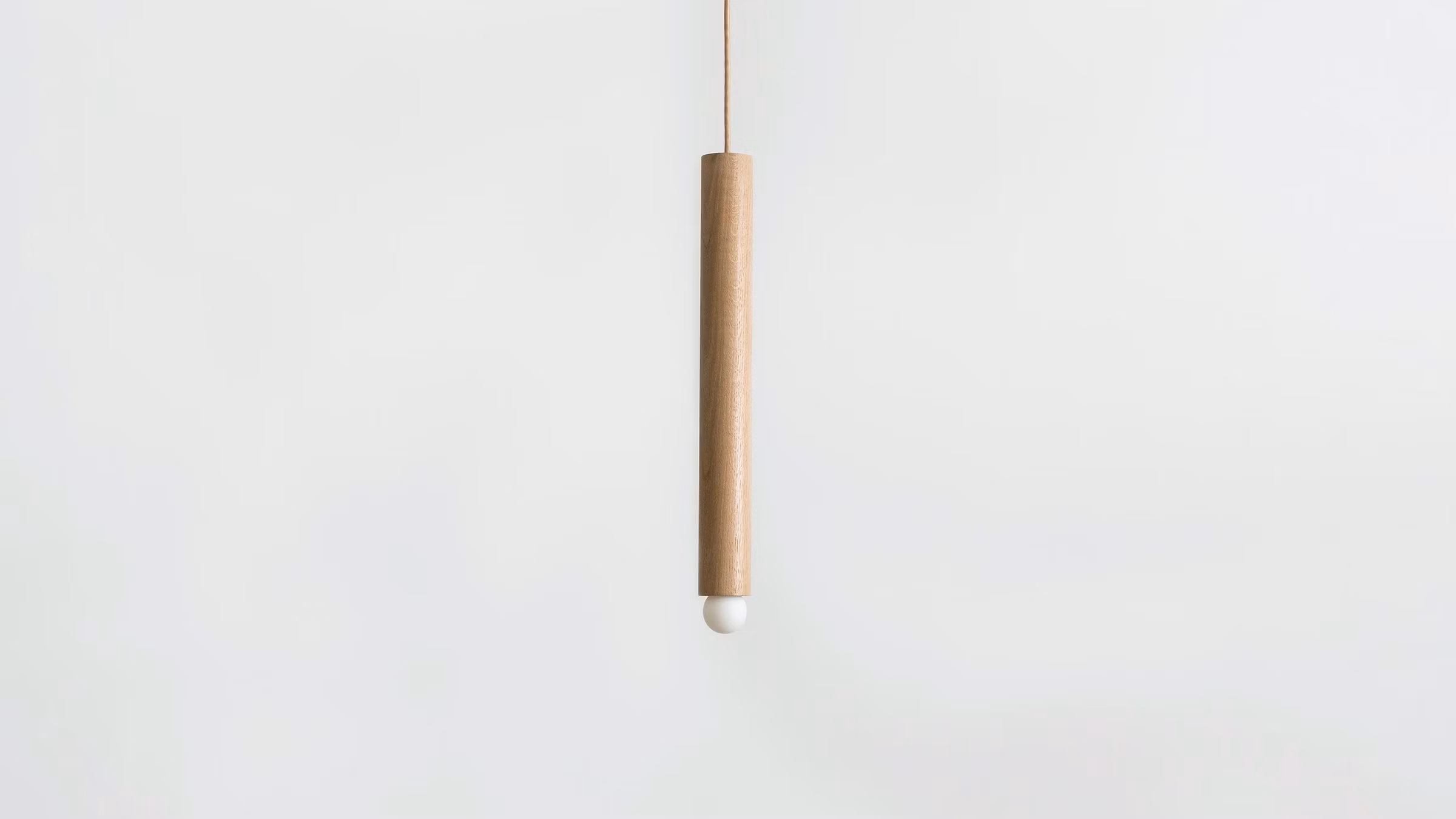 - The LODGE CORD PENDANT LARGE is crafted from a hand-turned oak dowel in our linear length. Suspended from a cloth cord, the wooden dowel is a tactile armature punctuated by a single glowing bulb. Available in Natural Oak or Oxidized Ash with Hewn Brass or Bronze details. UL Listed. Damp Rated.