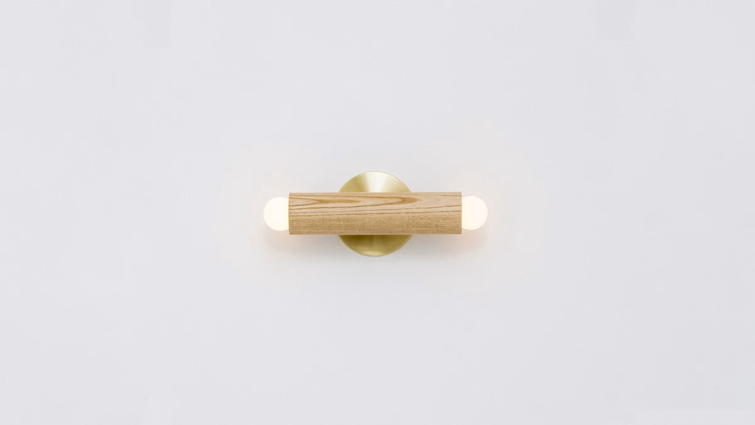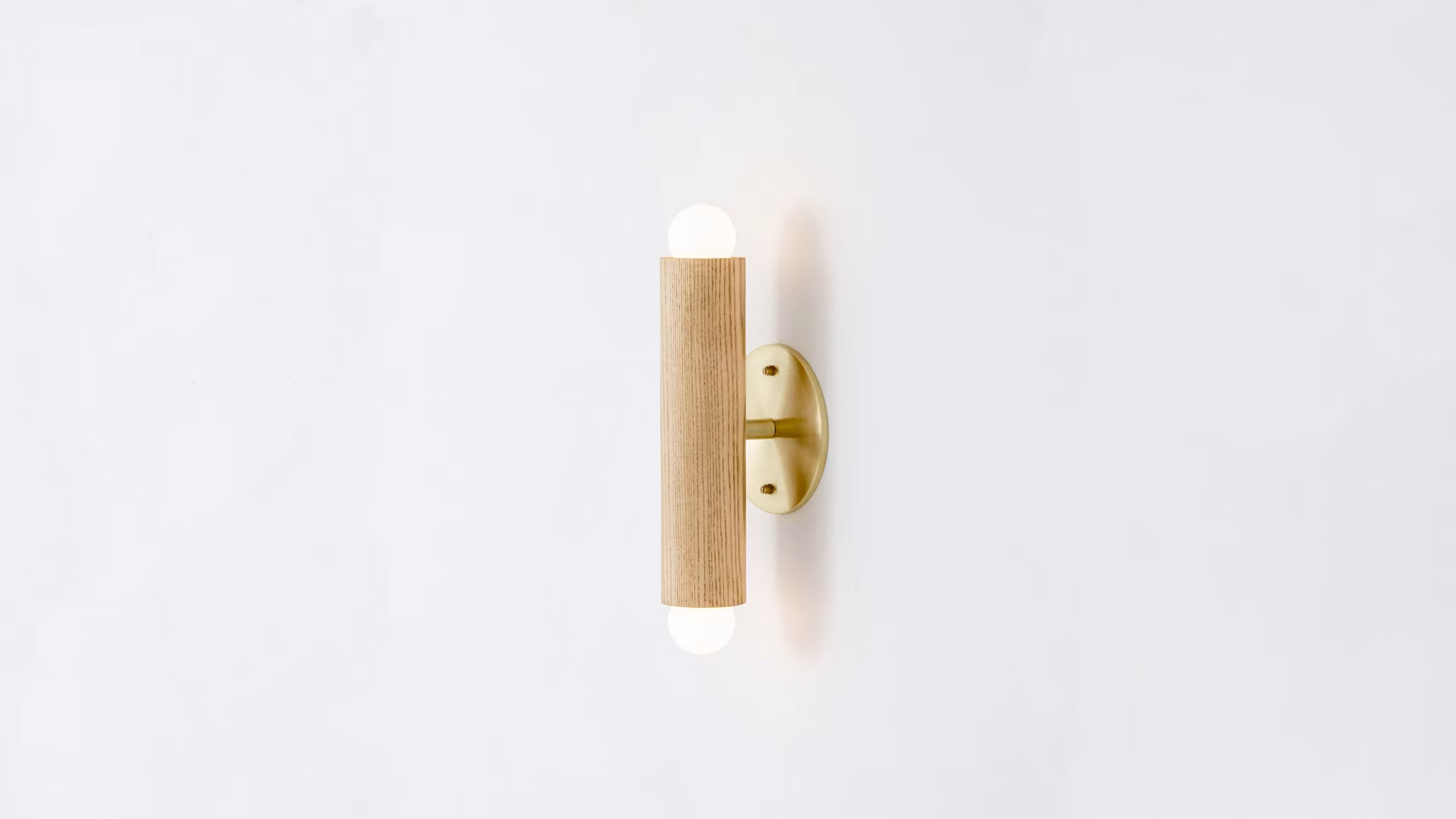 - The LODGE DOUBLE SCONCE is identical in scale to our endlessly versatile Lodge Sconce, but introduces a second bulb, for twice the illumination. Our natural oak is domestically sourced. Variations in tone, color, and grain pattern are part of the inherent beauty of this natural material. UL Listed. Damp Rated.