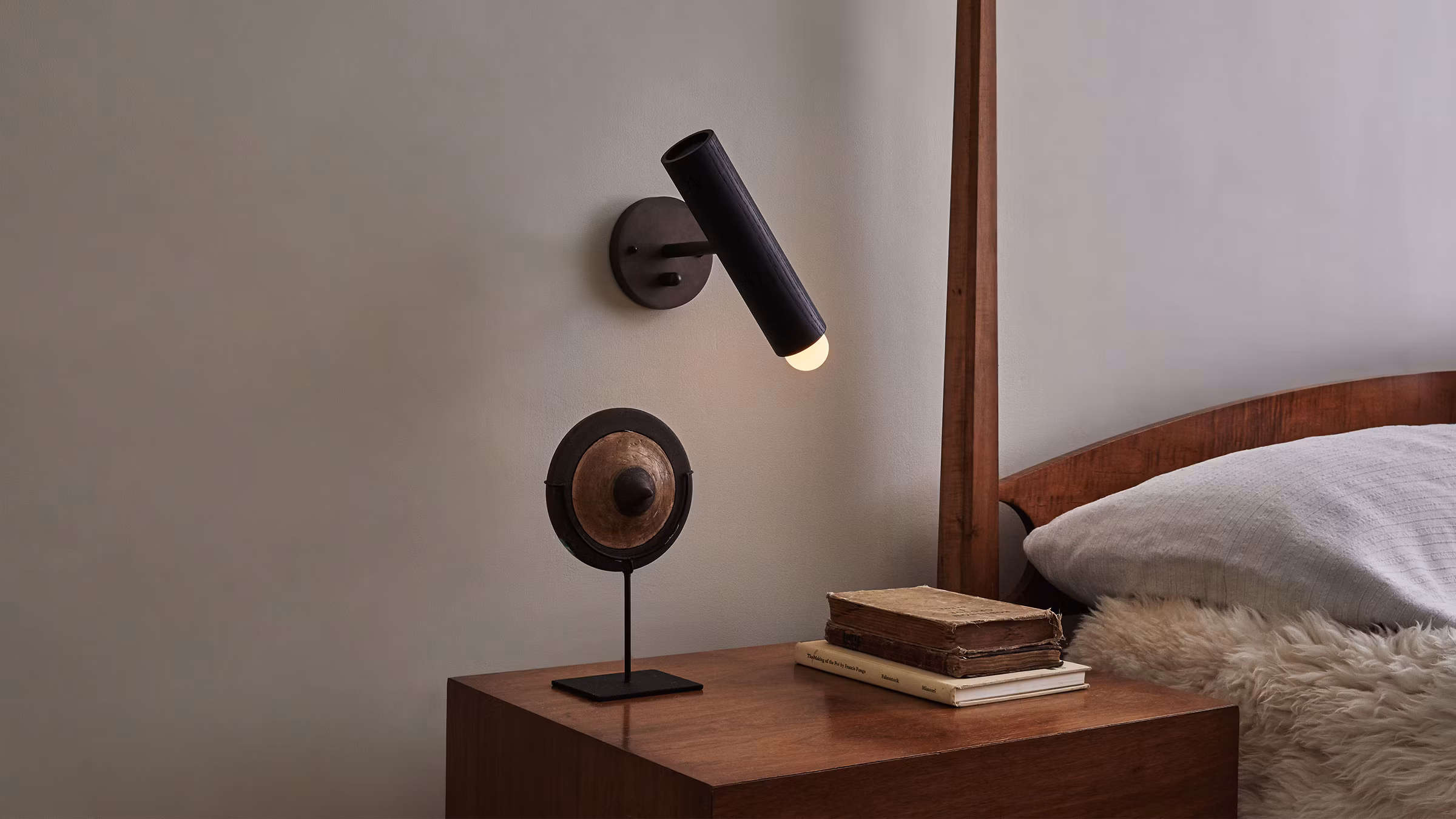 - The LODGE EXTENSION SCONCE projects the wooden LODGE cylinder off the wall. An incorporated swivel creates comfortable bedside reading or task lighting. Variations in tone, color, and grain pattern are part of the inherent beauty of this natural material. Features an integrated dimmer knob. UL Listed. Damp Rated.