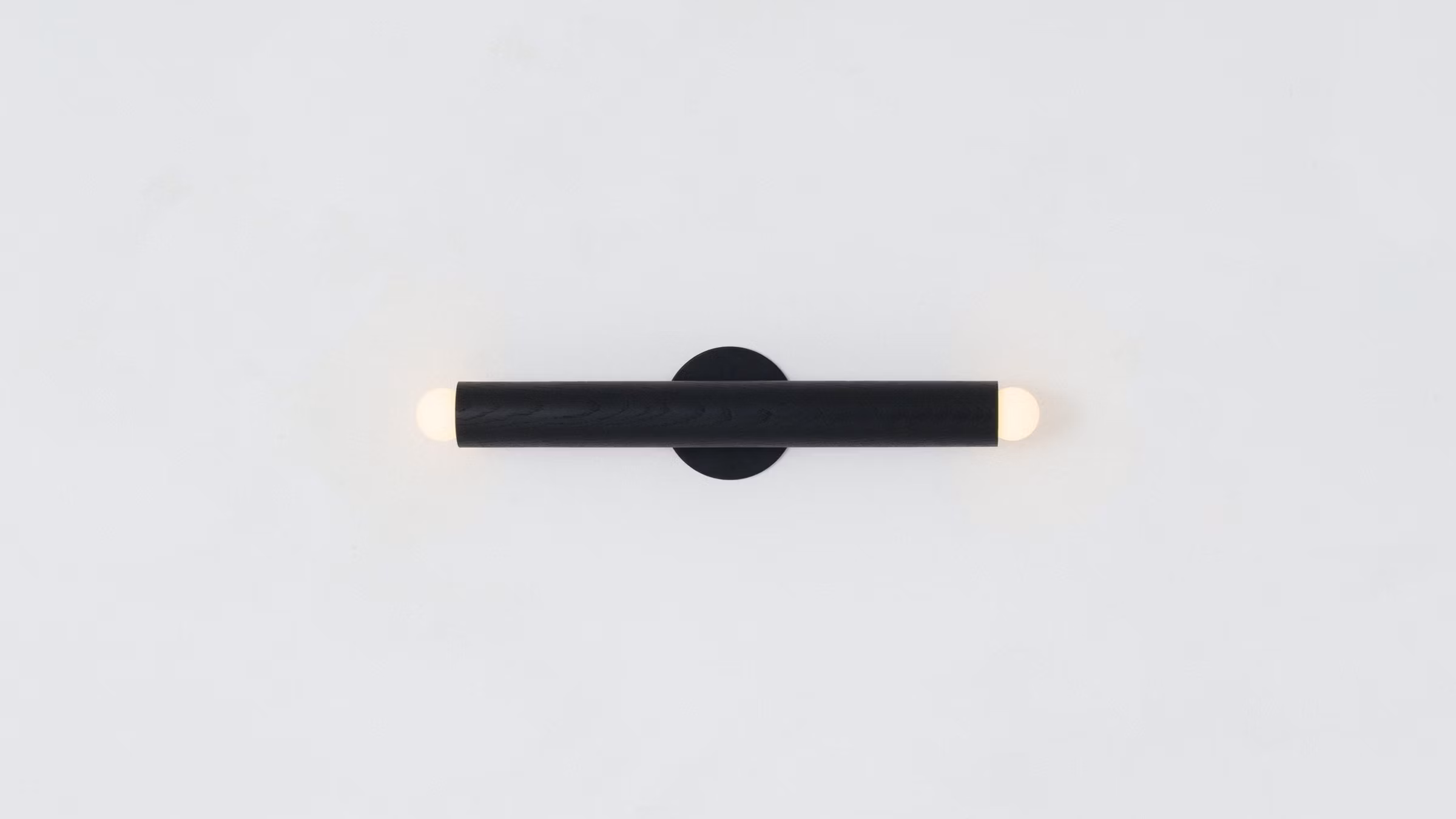 - The LODGE LINEAR SCONCE is an elongated vertical gesture capped at each end by a porcelain LED bulb. A lithe but powerful presence makes this fixture ideal for use in a vanity or hallway. Variations in tone, color, and grain pattern are part of the inherent beauty of this natural material. Made in the USA. UL Listed. Damp Rated.