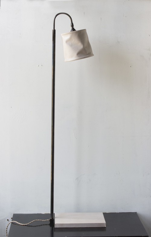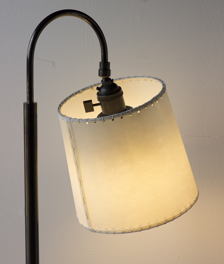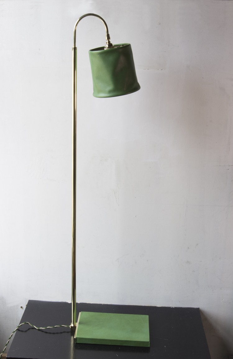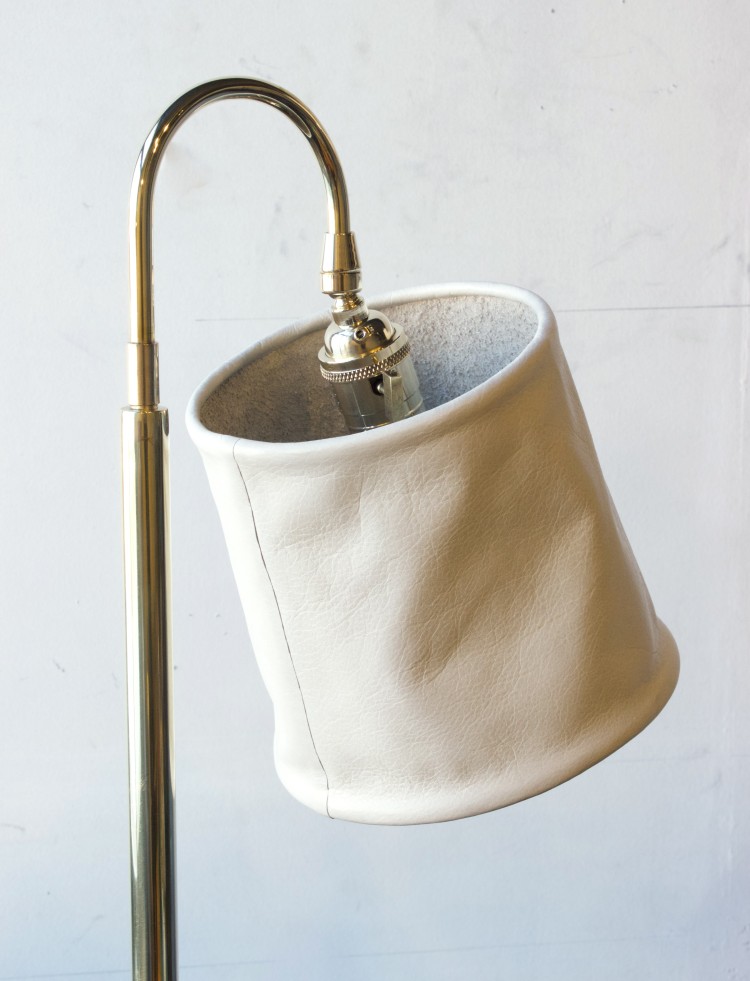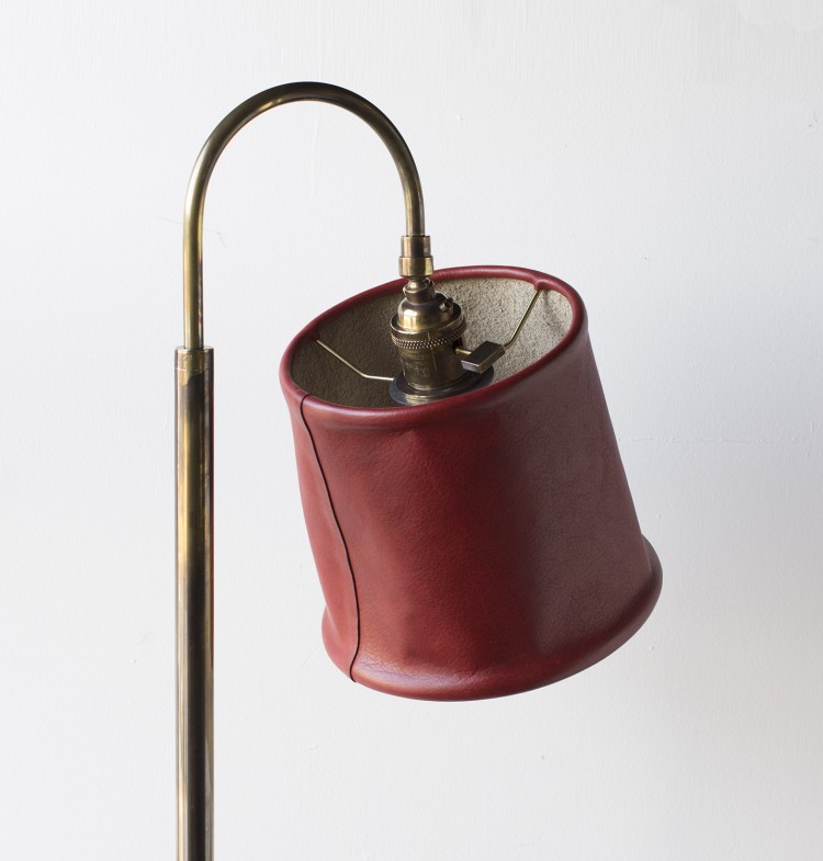 - Solid machined polished unlacquered brass, hand-dyed waxed leather, hand-dyed braided cotton cord, pivoting leather shade. - All material finishes are living finishes: they will change and patina for the better with time and use. Every product is individually hand assembled; slight variations in color, size and shape are to be expected.