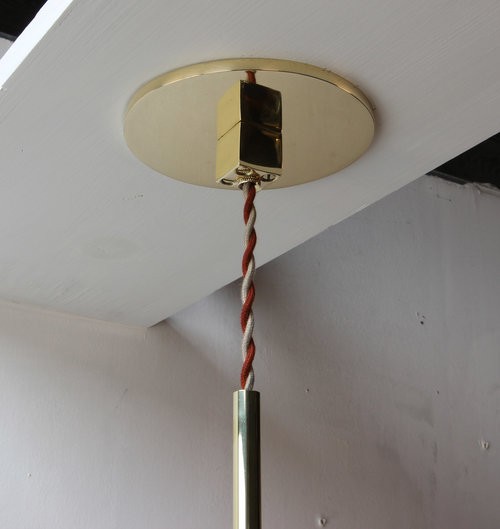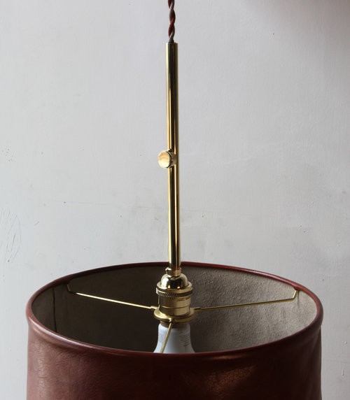 - Solid machined polished unlacquered brass, hand-dyed waxed leather shade with hand-dyed braided cotton cord. All material finishes are living finishes: they will change and patina for the better with time and use. Every product is individually hand assembled; slight variations in color, size and shape are to be expected Hardwired only