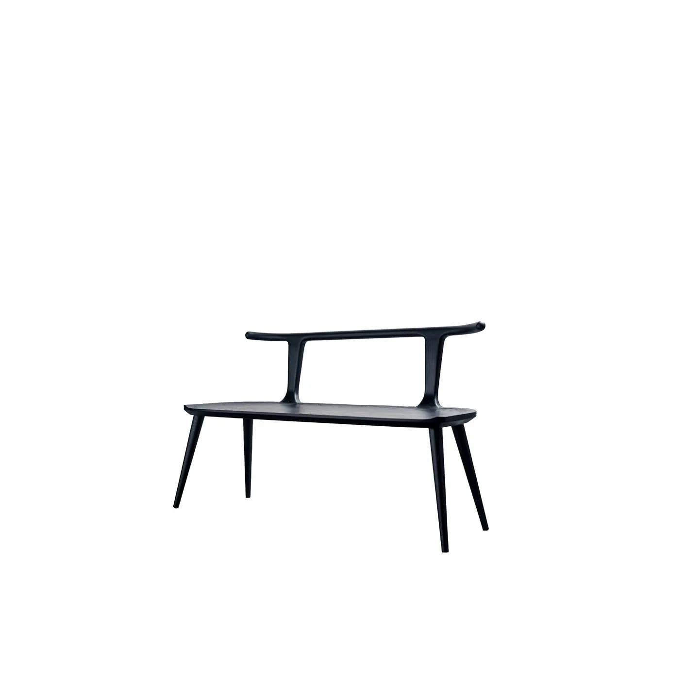 A continuous arm settee featuring a minimized footprint. Designed by George Sawyer, the Low Back Waiting Settee is a modern take on the traditional American Windsor style. It features a hand-carved seat, riven back and wedged joinery for maximum durability and comfort.