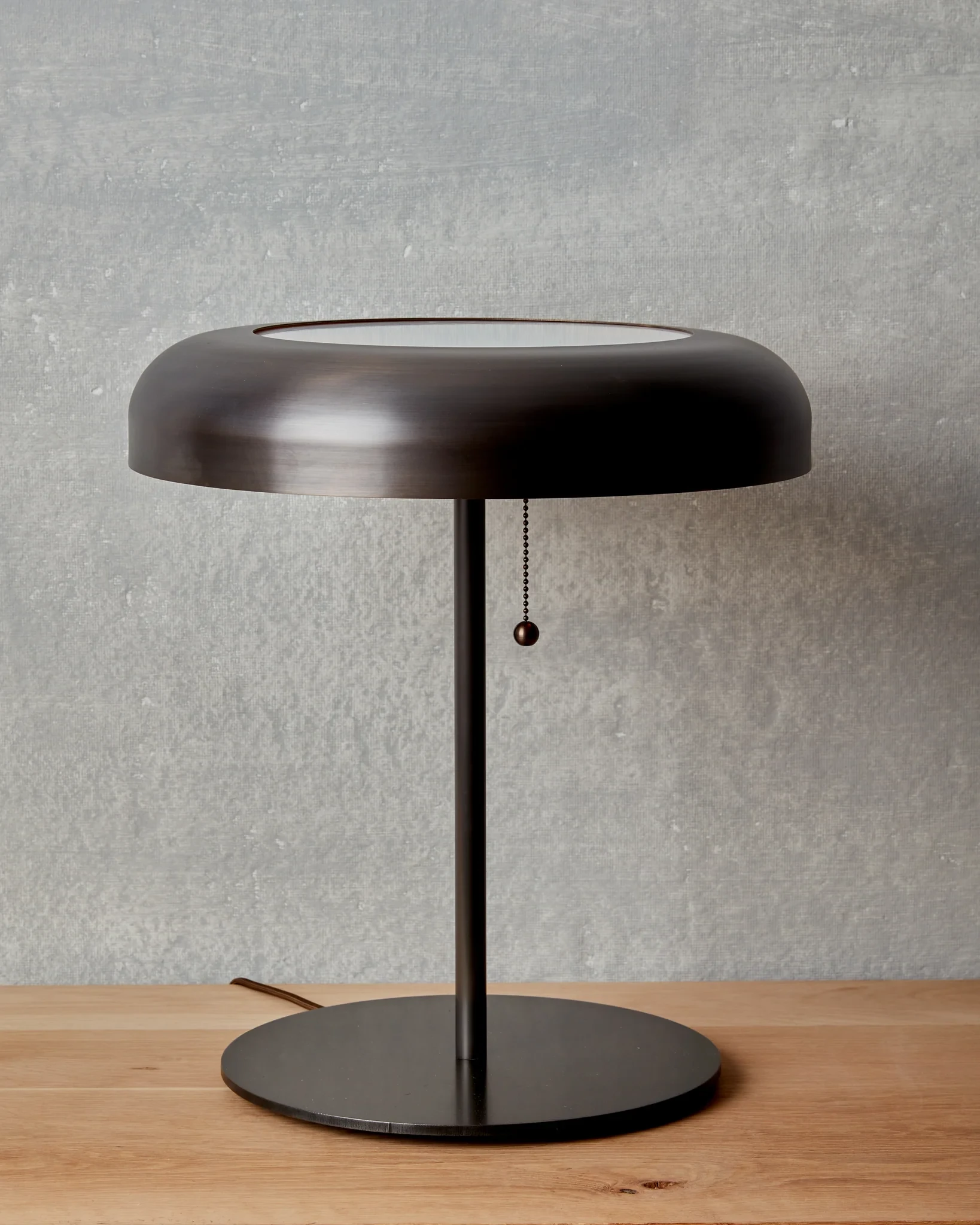 By popular demand, our Lucille fixture is now available with a milk glass diffuser encased in spun bronze. Available as a pendant or flush mount.