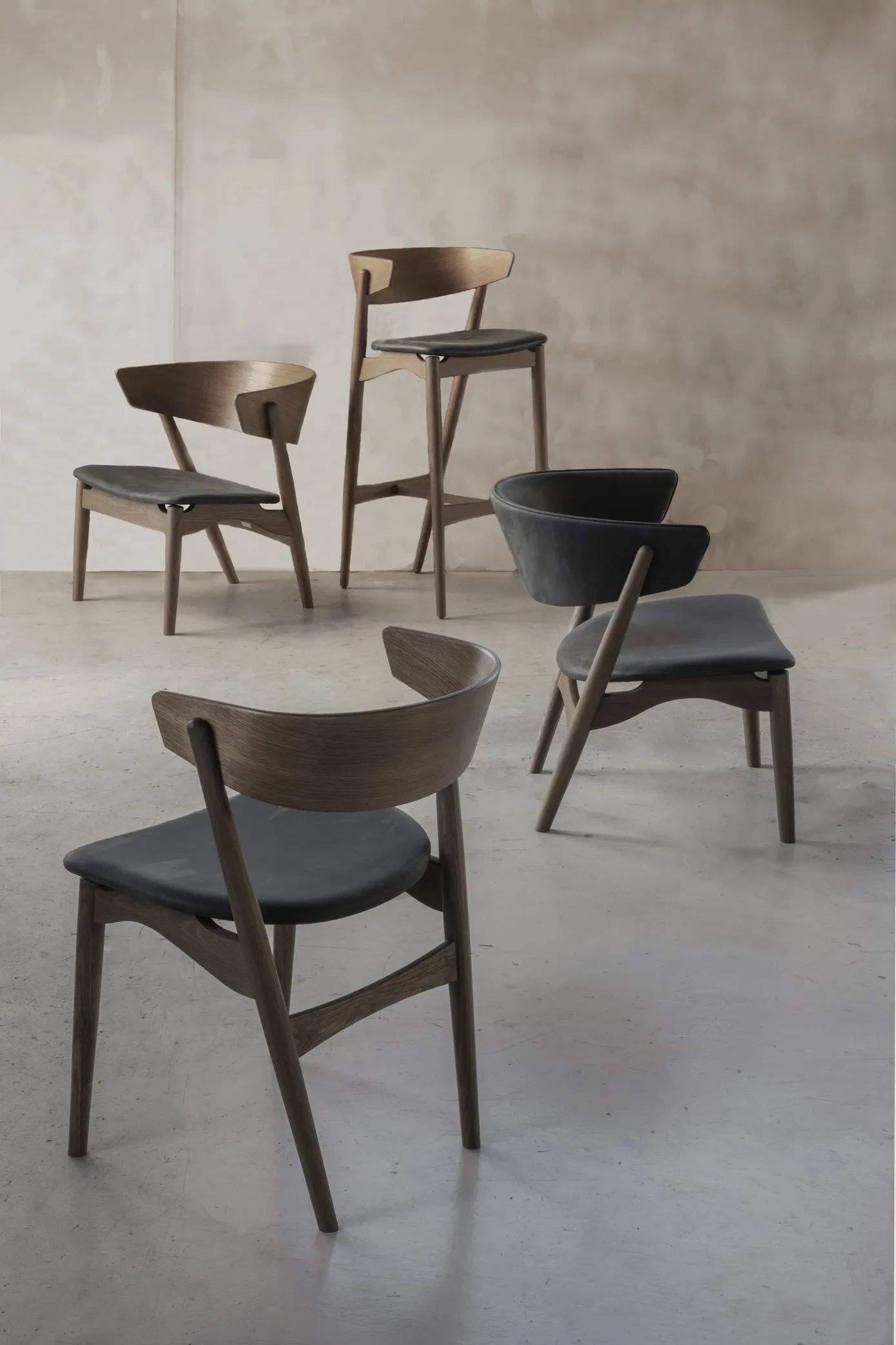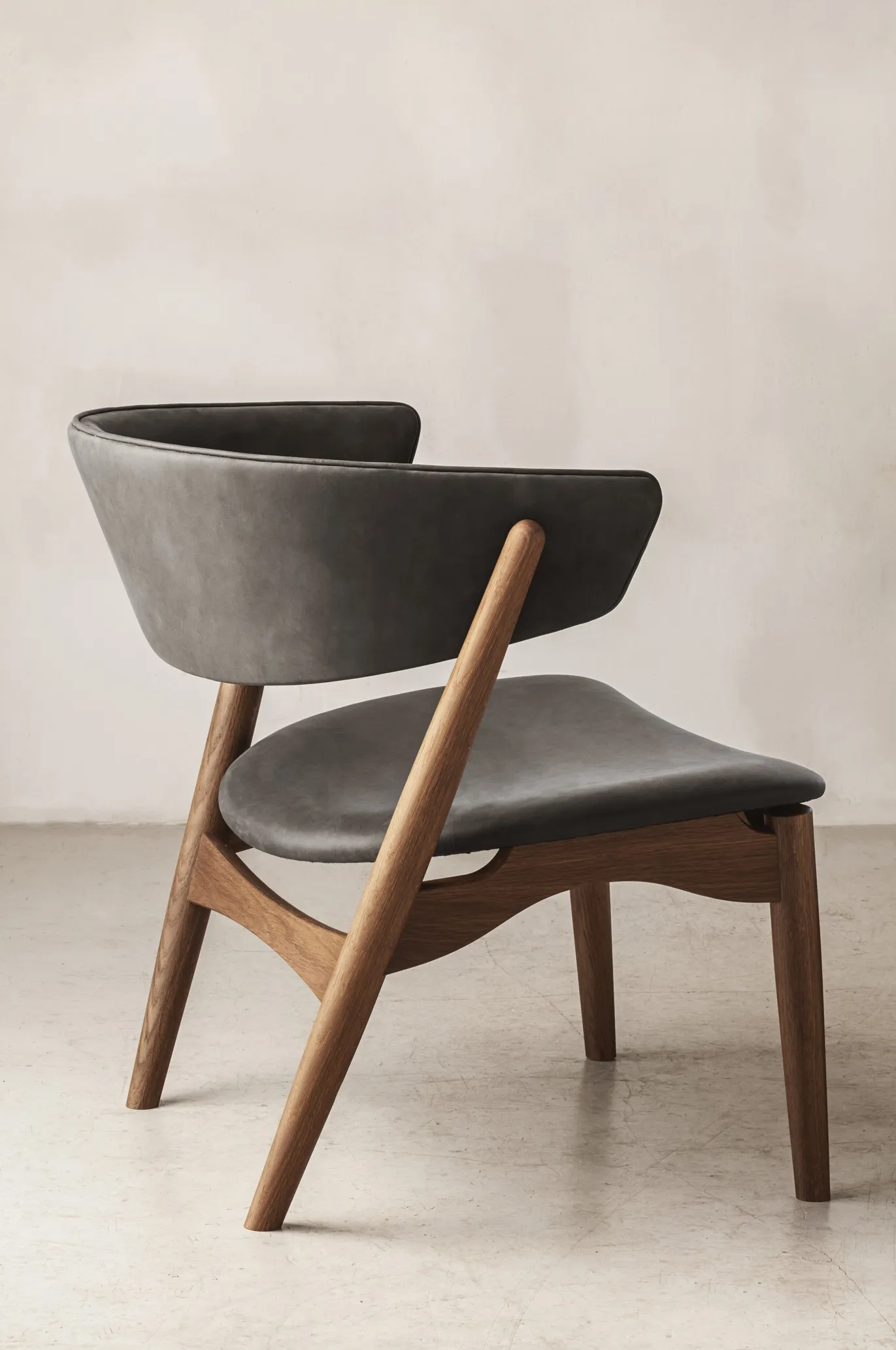 The unique lounge chair takes its inspiration from the ageless No 7 dining chair designed by Helge Sibast in 1953. Carrying on the high-quality craftsmanship and design heritage from his grandfather, Ditlev Sibast designed the lounge chair as a respectful and endearing transformation of the original dining chair together with his wife, Anna. The kinship with the dining chair is emphasised by the large moulded backrest and the gently tapered back legs. Other key qualities of the design include the laid-back comfort and simple expression. The lounge chair descends from the timeless beauty of the Danish Modern movement and is a bold and extraordinary design made with the fundamental attention to detail that runs in the Sibast family.