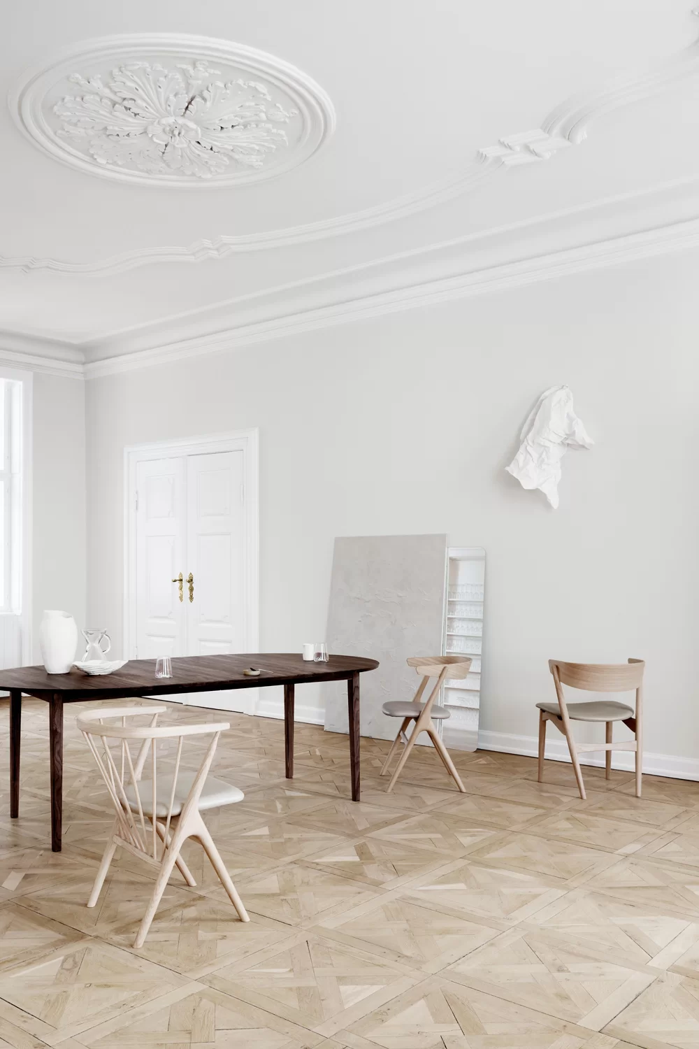 1953 was a productive year for the entrepreneurial furniture designer and cabinetmaker Helge Sibast, who spent it coming up with three of his most iconic designs Sibast No 7, No 8 and No 9. Sibast No 9 is a light dining chair with an unfailing sense of style. The chair features a hovering seat and front legs that angle slightly inwards – a design detail which gives the chair a slim, dynamic style seen from the front. From the side, the inverted Y-shaped frame stands out, accentuating the embracing top rail that enhances the chair’s unique identity.