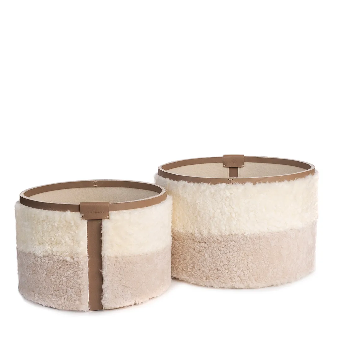 In combinations of caramel and off-white, coffee and off-white with fringe detail, reversable to fringless seam.