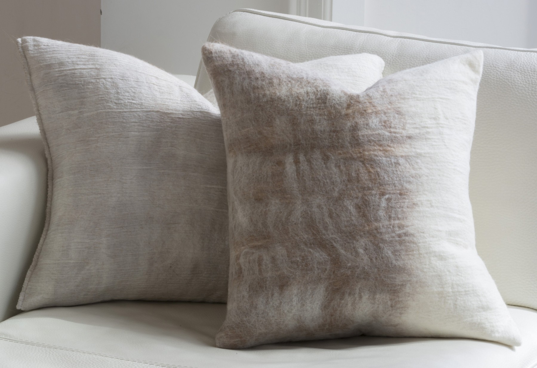 From the Nuno Clásico collection, these handmade pillows combine the highest-quality Italian merino wool with lush silk. The two materials are felted together, creating a fabric of exceptional lightness and luxurious texture.