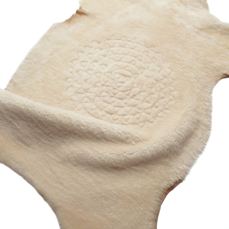 - Adorned with hand-punched and sewn appliqué, this full sheepskin hide can be used as a throw, rug or decorative detail anywhere in your home.