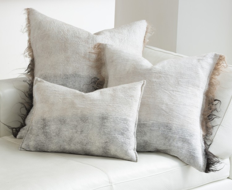 From the Nuno Clásico collection, these handmade pillows combine the highest-quality Italian merino wool with lush silk. The two materials are felted together, creating a fabric of exceptional lightness and luxurious texture.