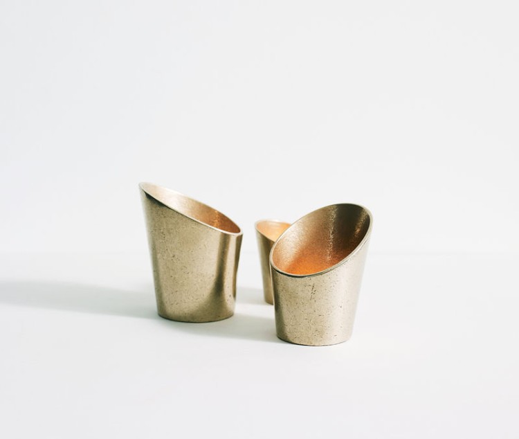 Sheath Tealights are manufactured in small batches so slight variations will occur from piece to piece. Production marks may include slight pour ripples or surface pitting. They will arrive with a bright finish but will oxidise and darken over time to reveal a distinctive patina. Simply use a metal polish to restore a like-new finish.