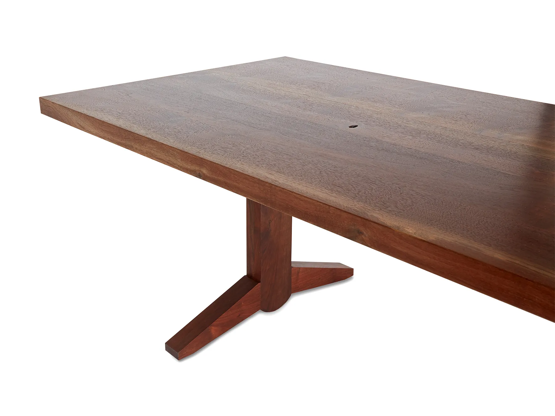 The Osland Dining Table is available with a flat oval, rectangular, and live edge top. Table top edge profile options include a beveled edge, round-over edge, shaped or flat edge. Custom lengths and widths available.