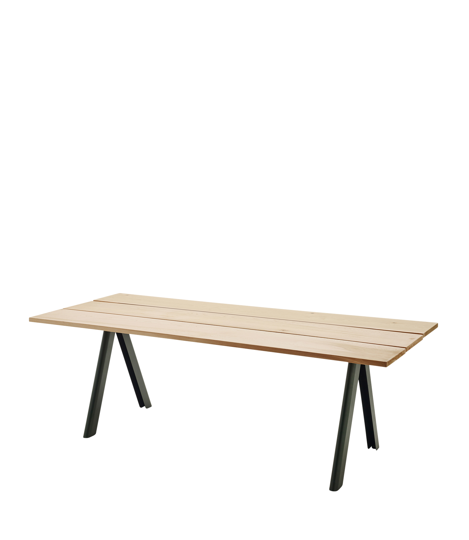 Overlap series stands strong on its overlapping steel legs. Thanks to the rustic wooden planks and the powder-coated steel, the collection has a modern edge and contemporary appeal. Perfect for both indoor and outdoor use. Overlap is designed in collaboration with Swedish architecture studio, TAF. Overlap Table is a simple high-quality table in Western Red Cedar characterised by its distinctive overlapping steel legs. Sturdy and durable with contemporary elegance, Overlap is a wonderful choice for both outdoor and indoor use. The lightness of Western Red Cedar makes it easy to move around in the garden or terrace. Over time, untreated Western Red Cedar wood will patinate to a beautiful silver-grey colour – similar to patinated teak, making it easy to combine with teak chairs.