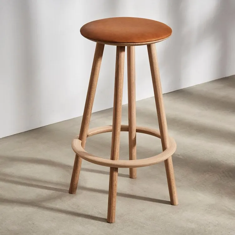 Made in solid oak with a choice of ebonised or natural finish and solid walnut, the OVO high stool is a perfect partner to the OVO high table, offered in two heights for a bar or kitchen island. It is available with a timber top which has a pillowed top surface and softly bevelled edge which makes it both comfortable to sit on and incredibly tactile. Alternatively, an upholstered version adds softness and understated elegance.We have chosen Sorensen Dunes Leather for its smooth, almost velvety matt finish and understated elegance. It is an aniline leather with subtle natural markings and will look even better as it ages.