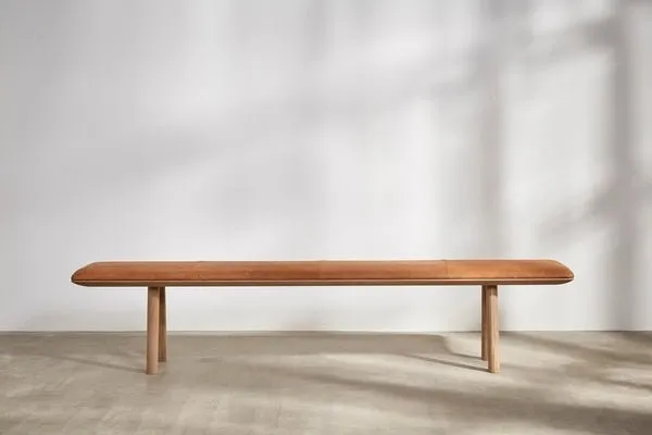 Made in solid oak with a choice of ebonised or natural finish and solid walnut, the OVO upholstered bench is available in two sizes. OVO benches partner well with the OVO dining table or are equally at home in a hallway, reception area or at the end of a bed.We have chosen Sorensen Dunes Leather for its smooth, almost velvety matt finish and understated elegance. It is an aniline leather with subtle natural markings and will look even better as it ages.