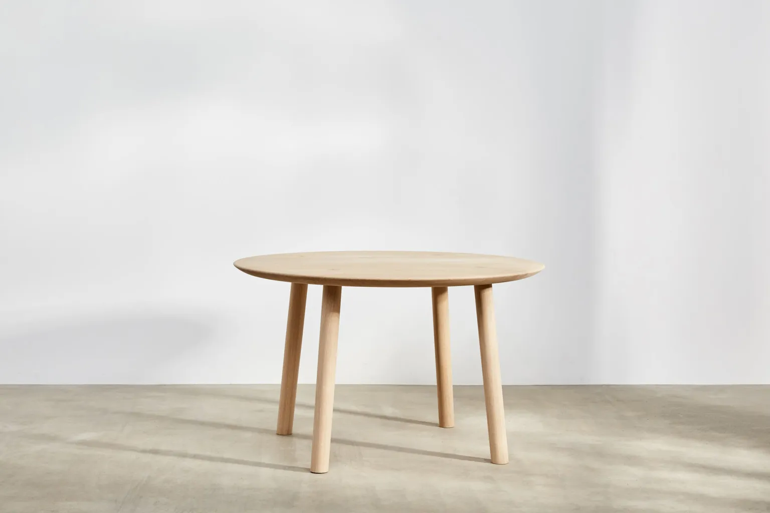 This round table works equally well as a dining table or meeting table. With a pillowed surface that invites the arms to rest comfortably on the gently bevelled edge, it is available made in both solid oak and walnut with an oiled finish.