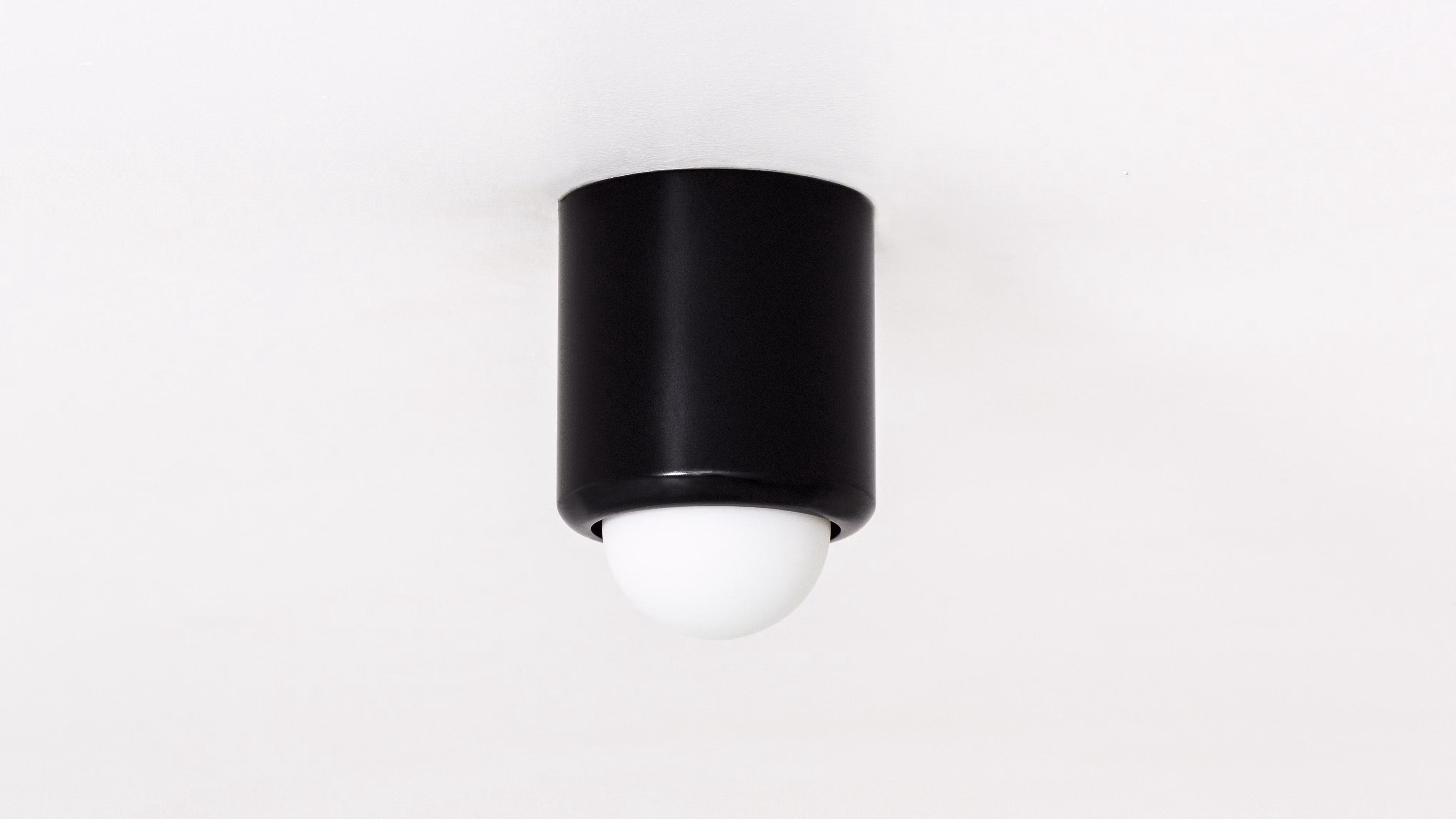 The PARK IV references porcelain fixtures of the pre-war period with its gently arched base curving lyrically into a hand-blown matte porcelain bulb. The most elemental of the PARK collection, the sleek fixture works equally well on ceilings and walls. UL Listed. Damp Rated.