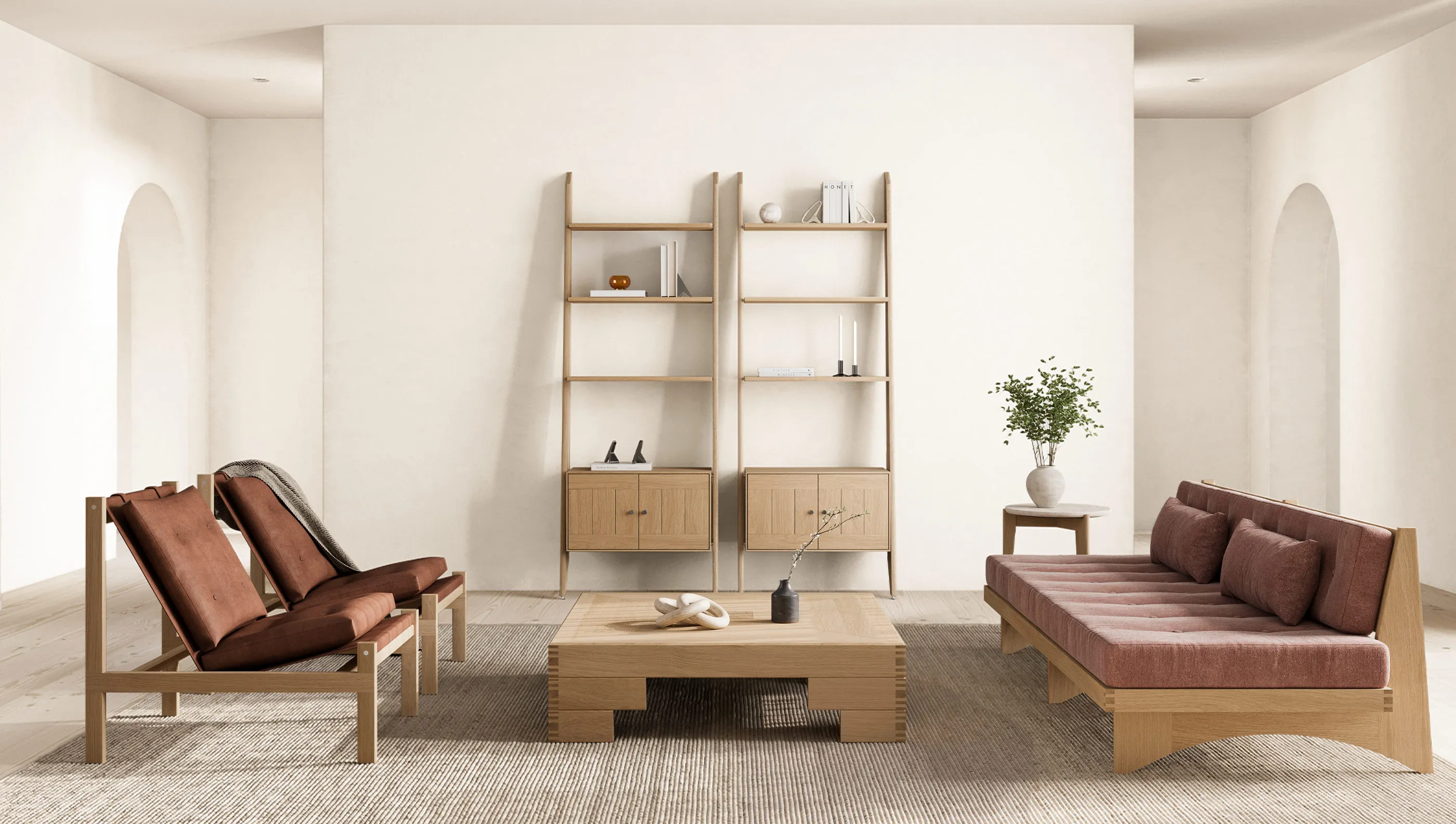 The Pierre Coffee Table showcases exceptional exposed joinery paired with a minimal parquet top.