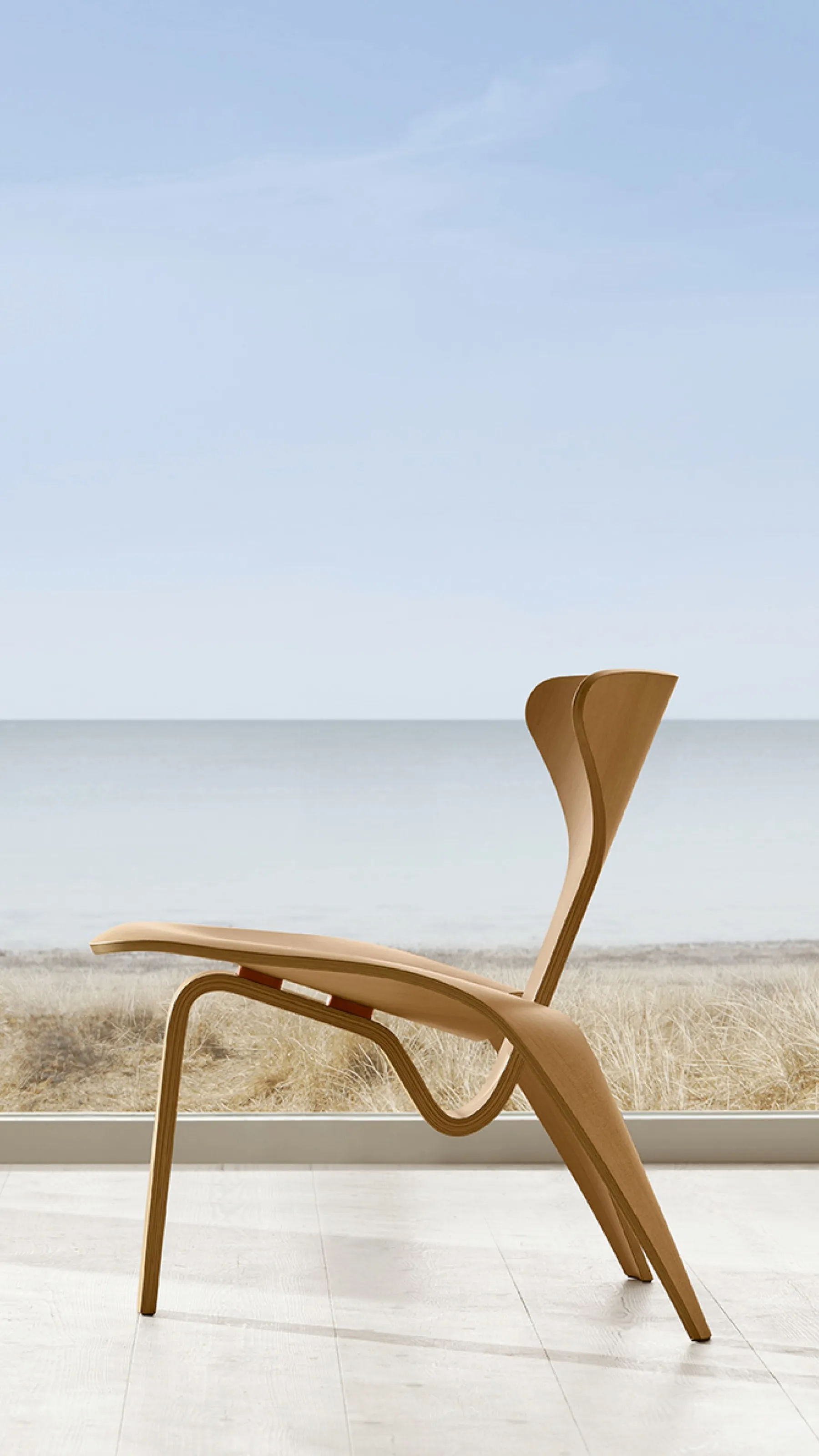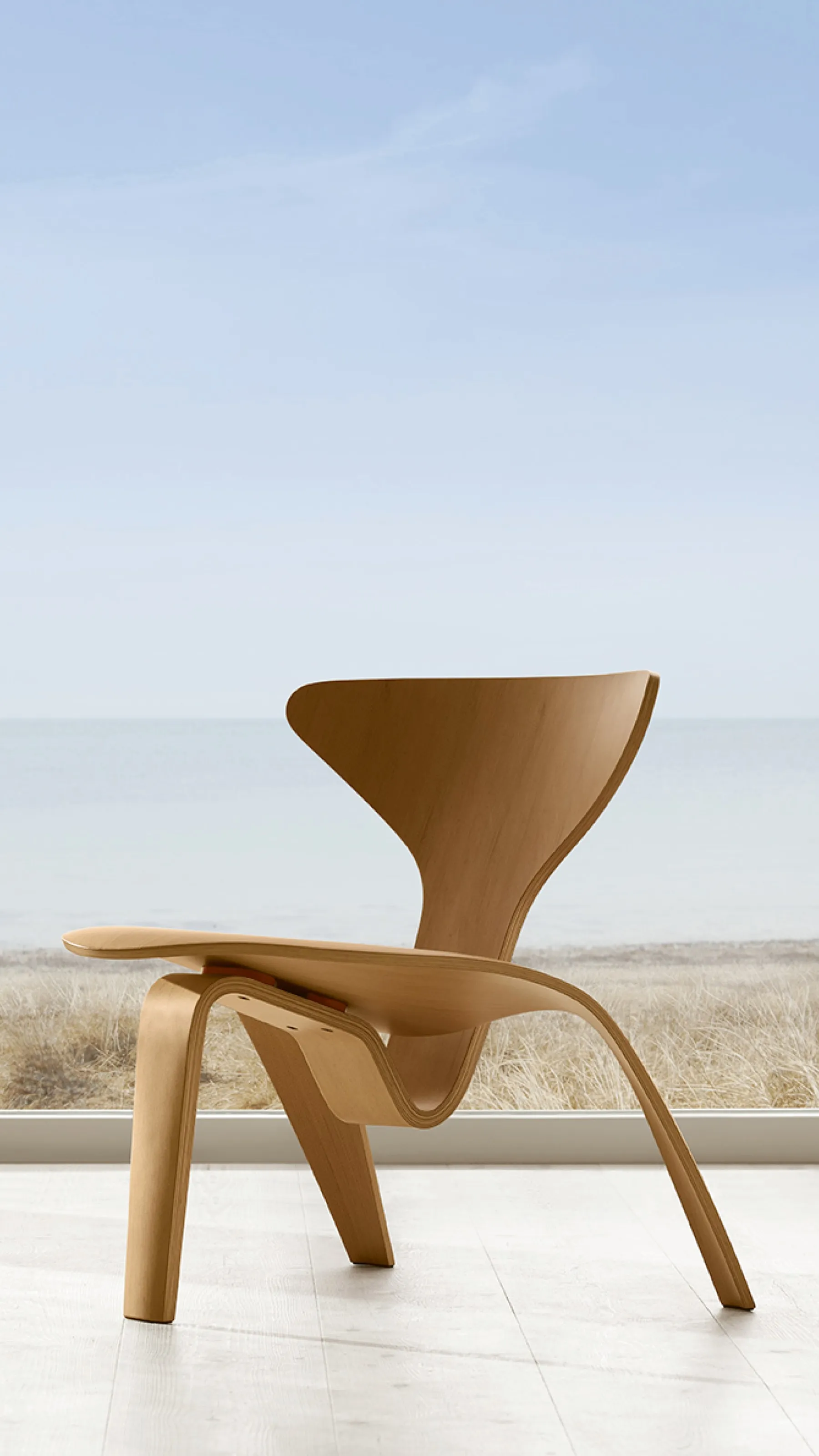 Poul Kjærholm’s one-of-a-kind PK0 A™ chair was designed in 1952, at the very beginning of the Danish designer’s tenure at Fritz Hansen. Highlighting the range of his talent as a furniture designer, the curved chair – now reissued in Oregon pine or black coloured ash with cinnabar red spacers – is a functional sculpture and a seminal piece of modern design history.