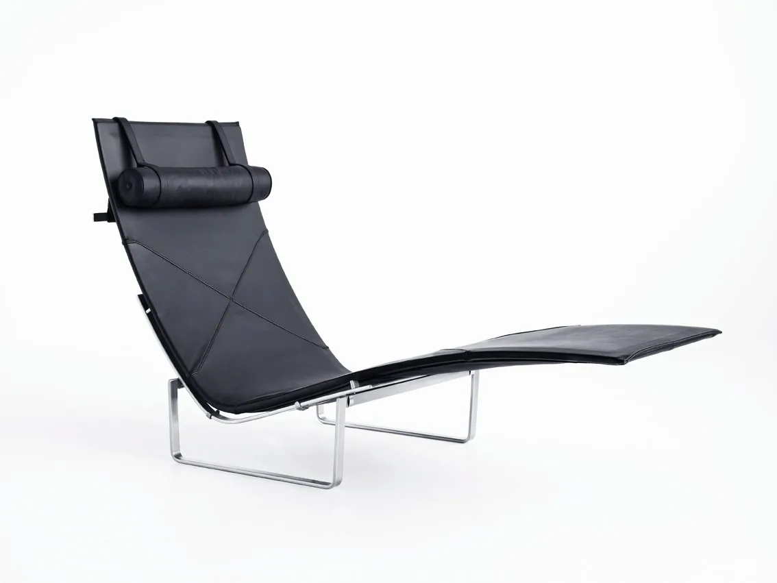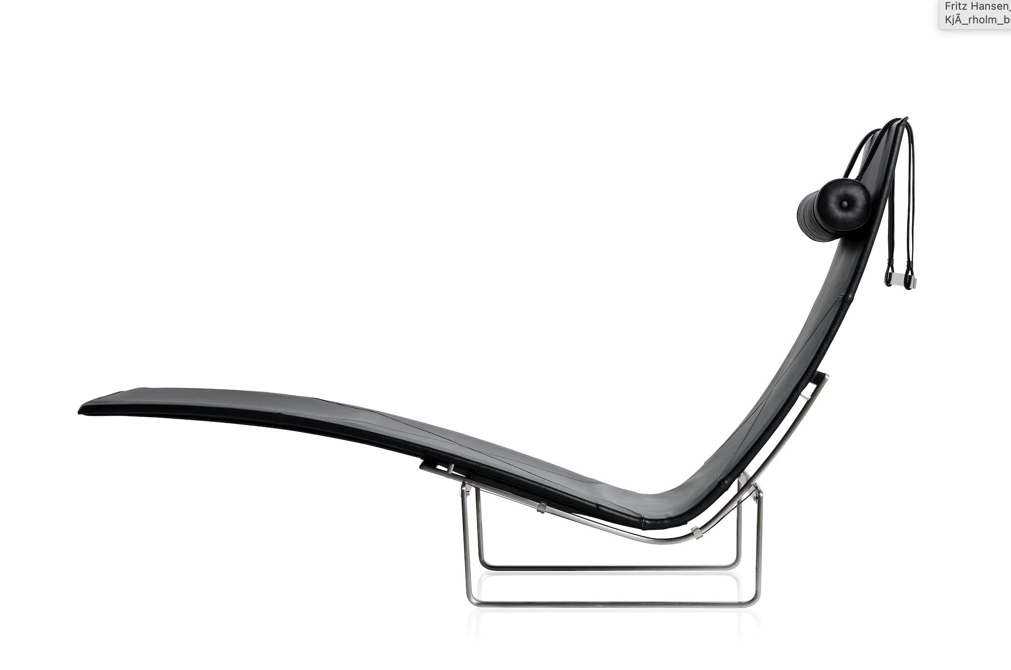 The PK24™ chaise longue chair stands out as perhaps the most recognisable chair in Fritz Hansen’s Poul Kjærholm’s collection. Inspired by the Rococo period and the French chaise longue, Kjærholm used steel to support a curvy, flowing form. He labelled it the ’Hammock Chair’ to stress that it functions by suspending the body between two points.