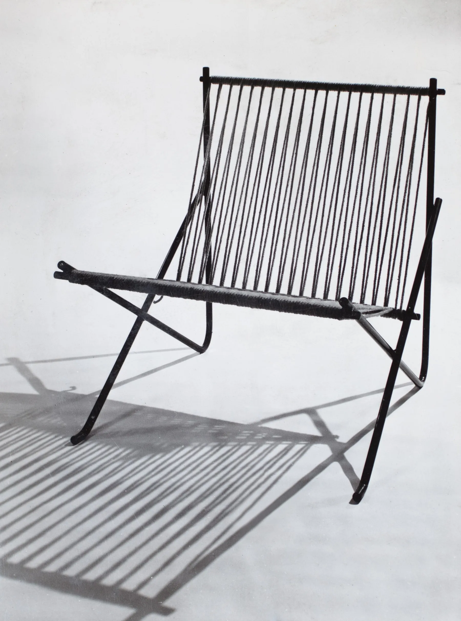The PK4™ is a modern, relaxed lounge chair designed by Poul Kjærholm in 1952. It radiates the designer’s distinctive elegance through a light, minimalistic expression in steel and flag halyard and perfectly exemplifies Kjærholm's visionary approach where art and design intersect.