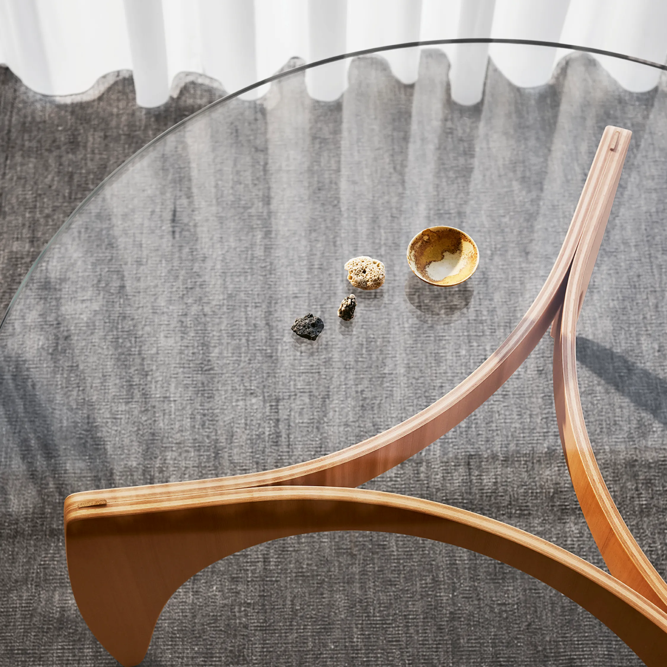 Conceived at Fritz Hansen in 1952 together with the PK0 A™ chair, Poul Kjærholm’s previously unreleased PK60™ coffee table is a striking tribute to aesthetics and function. Combining talented craftsmanship with innovation, the glass and wood veneer design is a significant piece of mid-century Danish design.