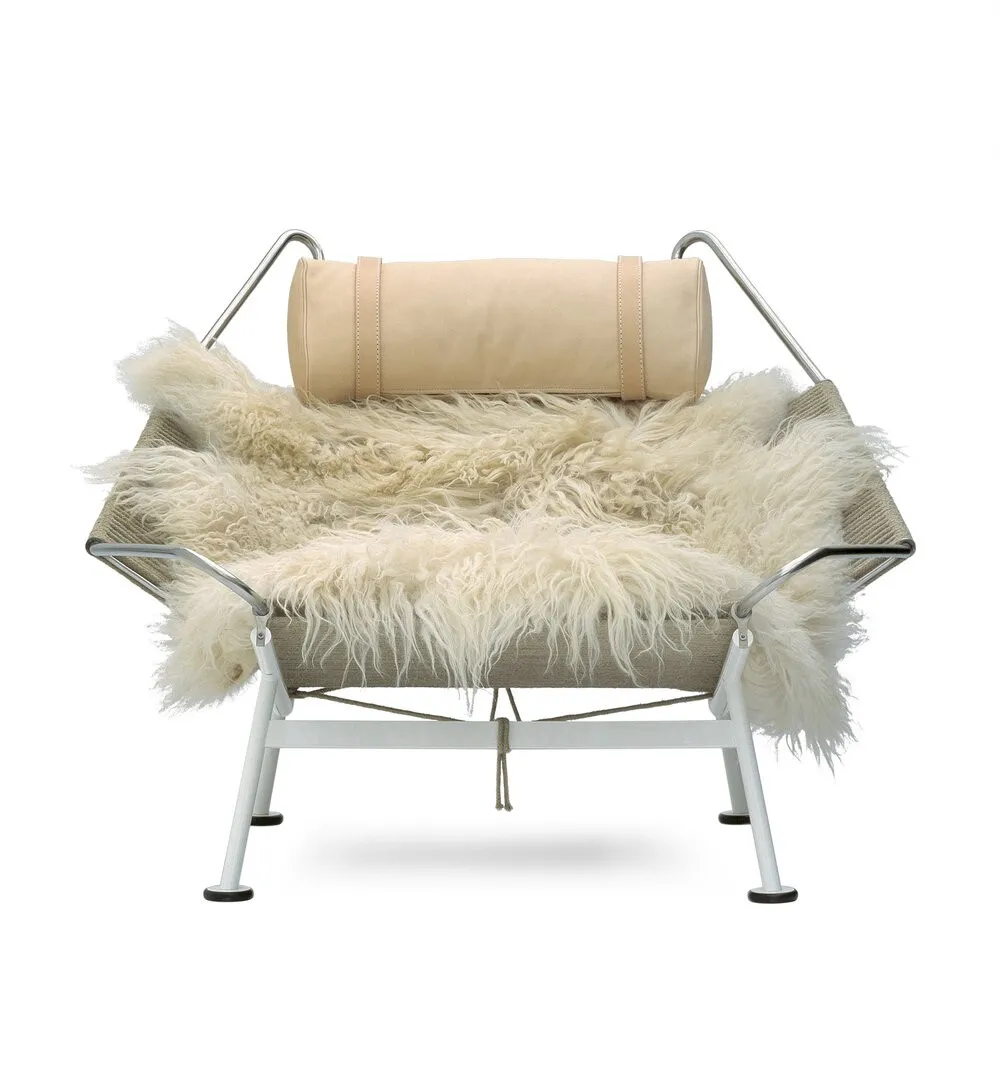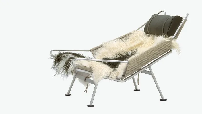 Despite Wegner’s preferences for wood, he shows his innovative skill and appetite with the Flag Halyard Chair. With it, he pays a tribute to the early modernist designers such as Le Corbusier, Mies van der Rohe and Marcel Breuer. Wegner proves his mastery with stainless steel with the same elegancy as that with which he mastered wood.