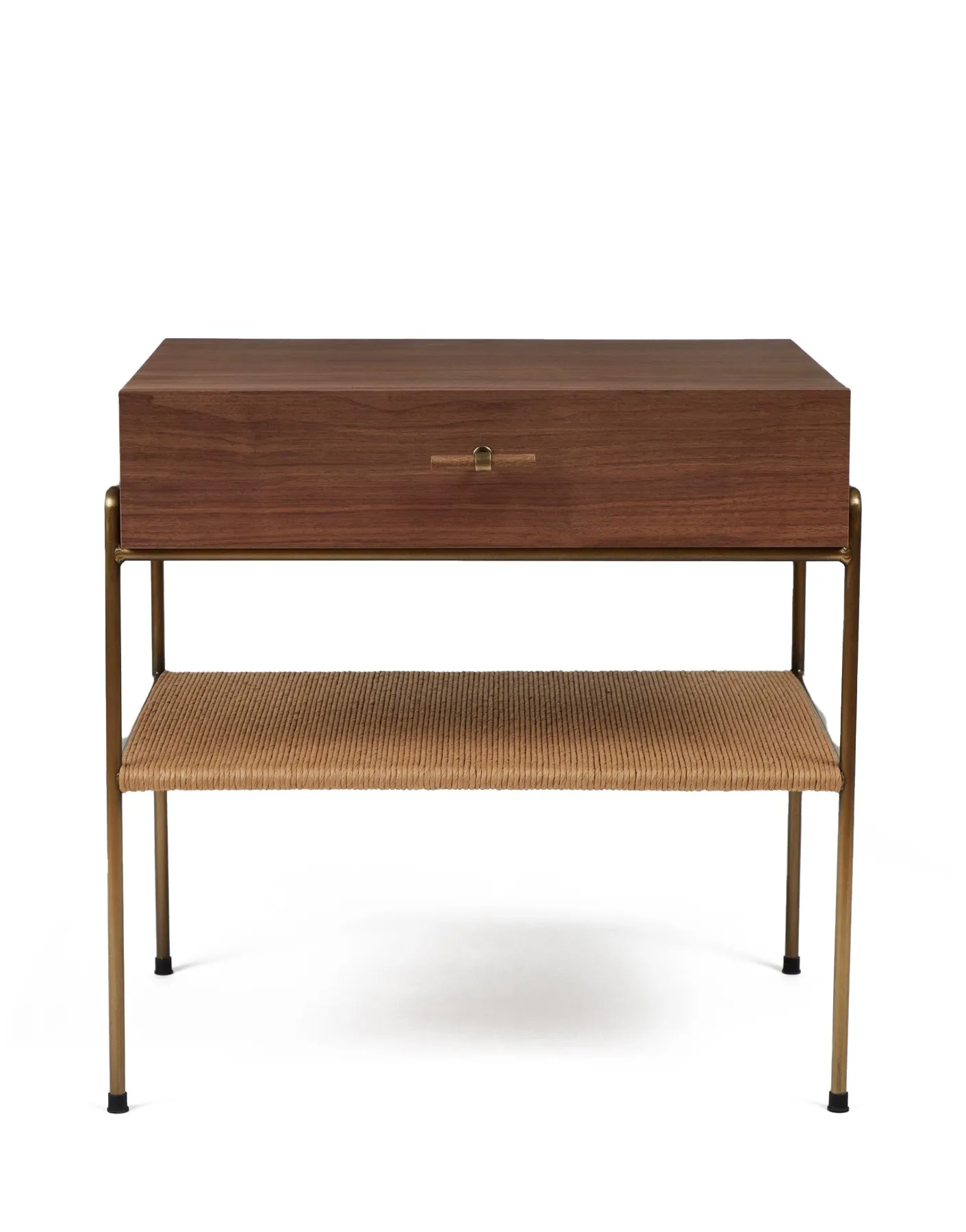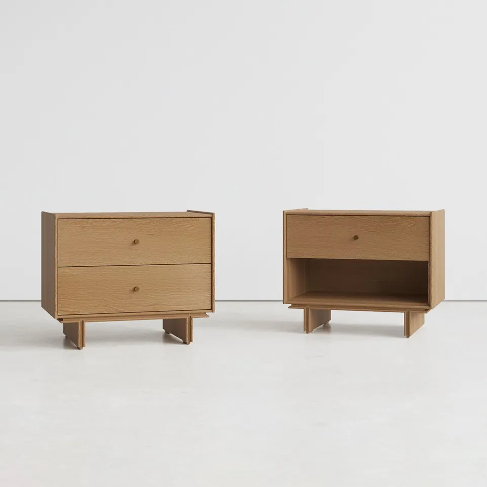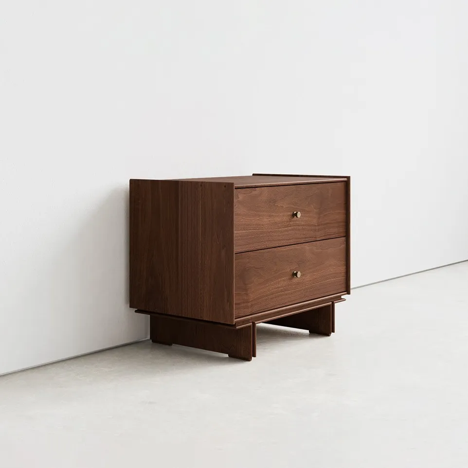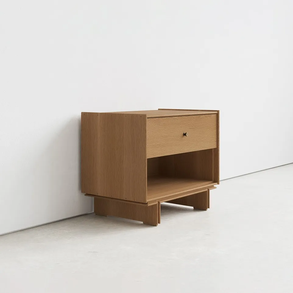 An integral part of the Profile Series this bedside table utilizes solid wood case construction with hand-sawn veneered drawer fronts.